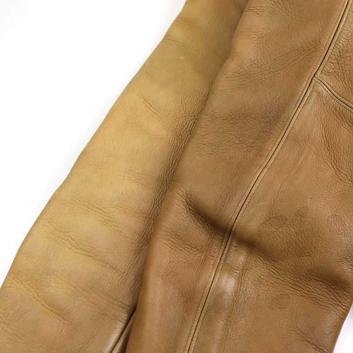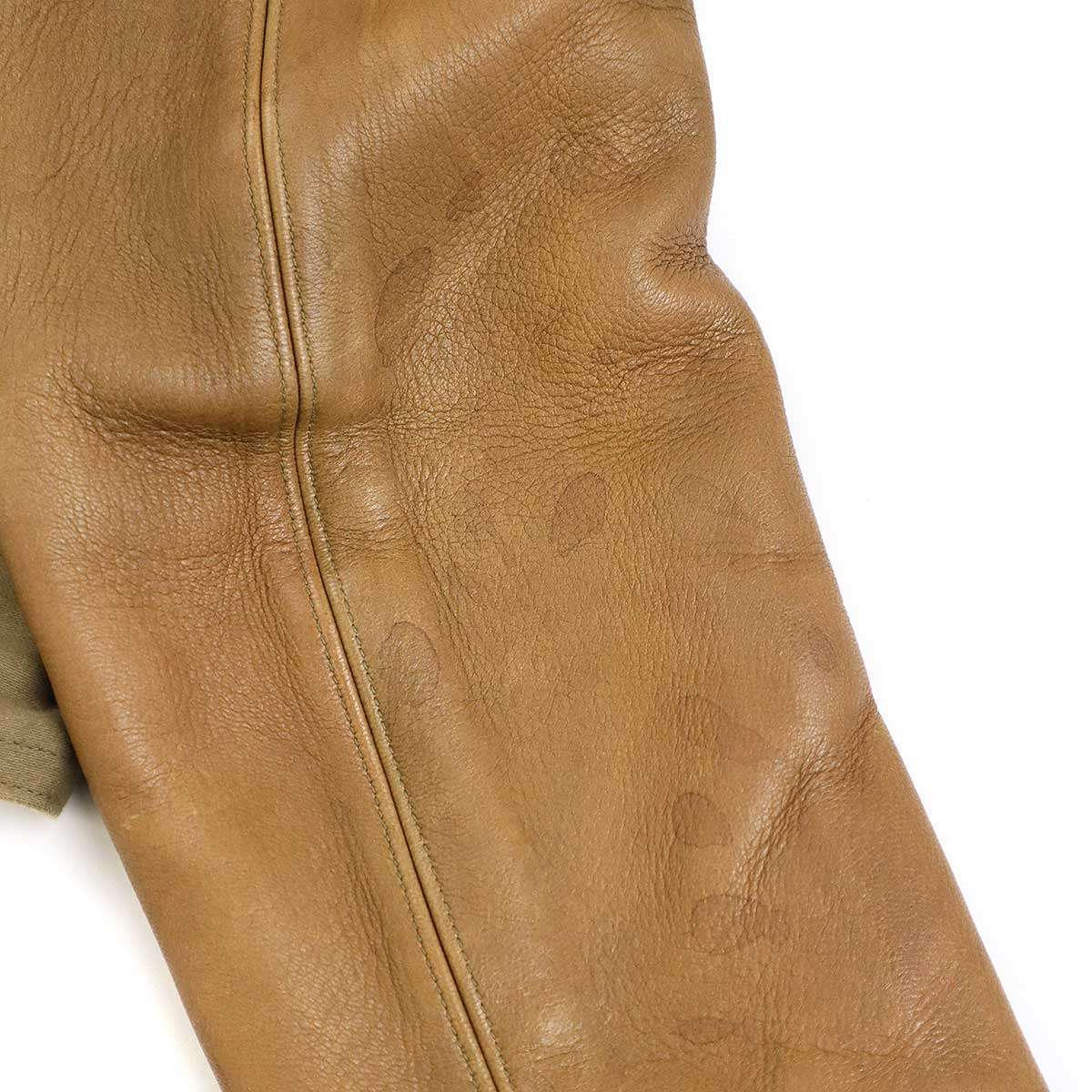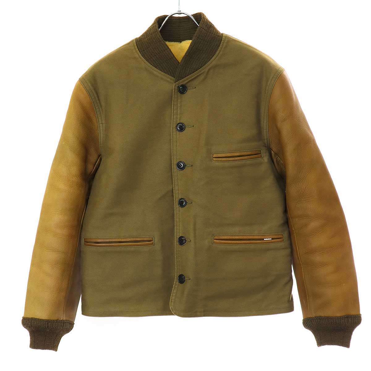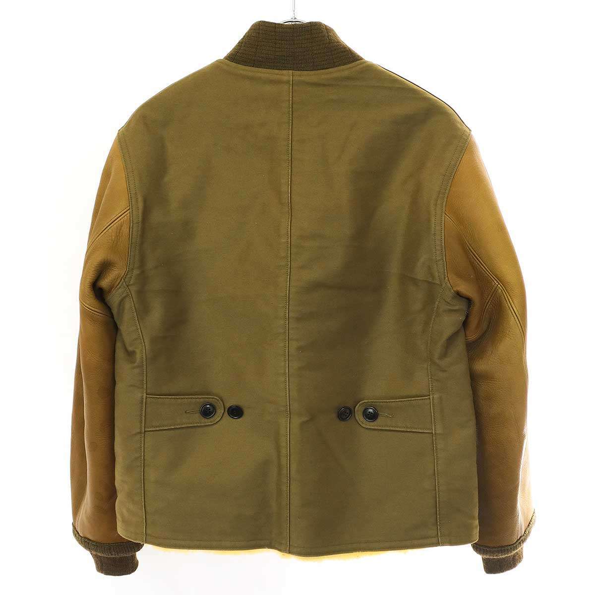袖レザー部に数カ所のシミ、デザインによる色褪せのほか使用による色褪せがあり使用感がございます。