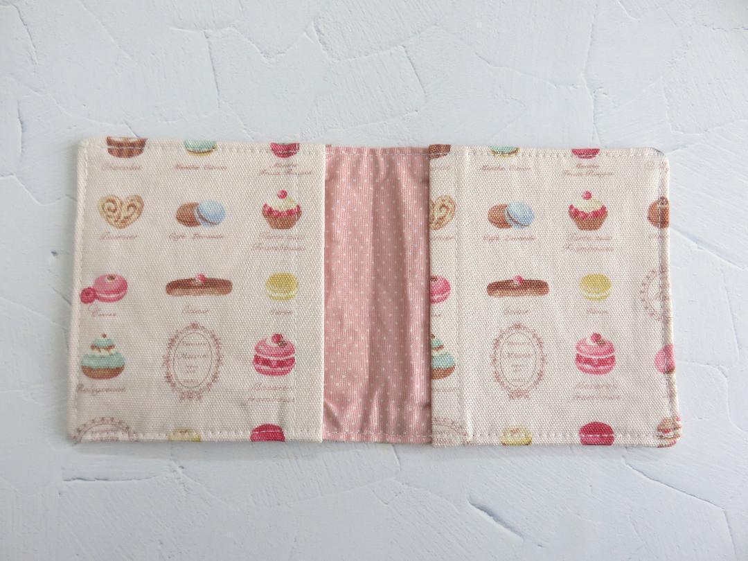 かわいいマカロン柄生地と、ドット柄の生地を使用しています。