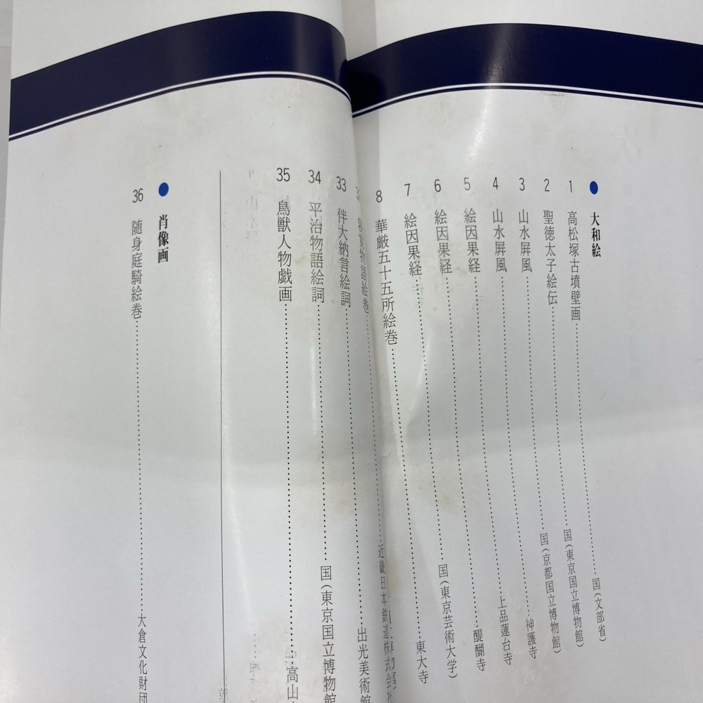 国宝2の目次のページと22~23、国宝3の53~54、57~58ですが、貼り付けられたようなノリ跡があり、完全には開けなくなっております。その他数ページ、完全に開けますが少々のノリ跡があるページがございます。