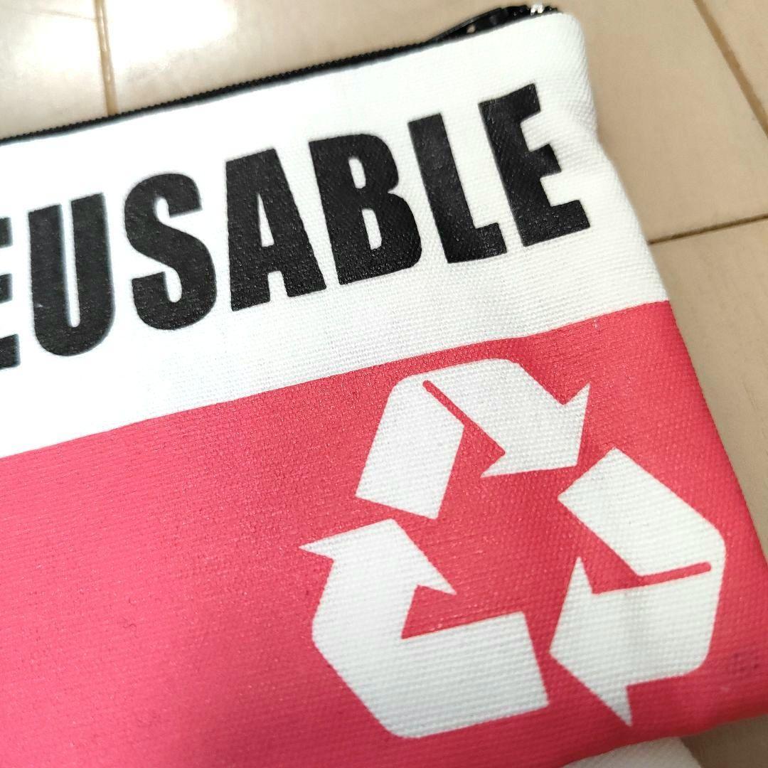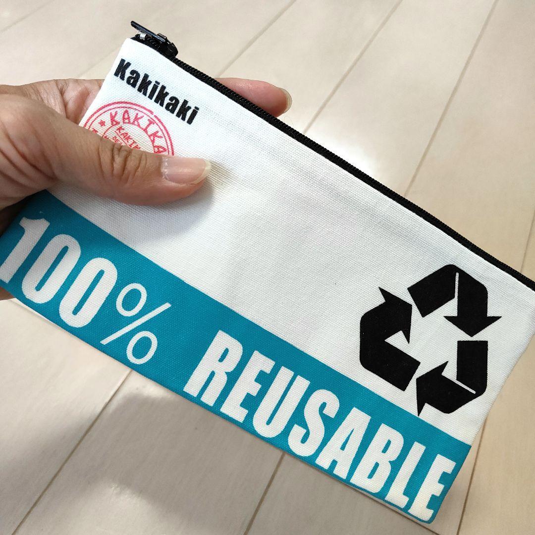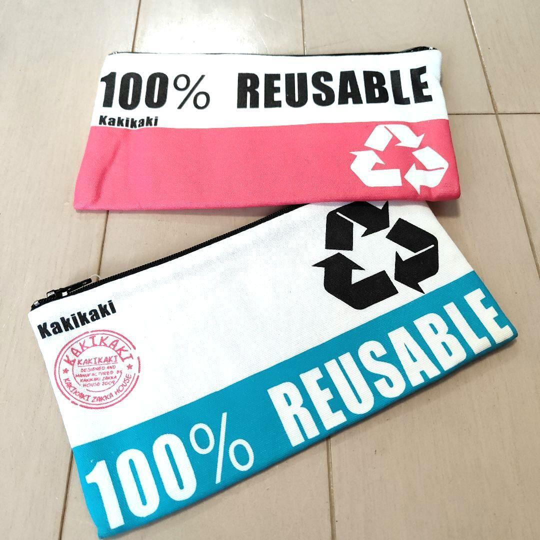 リユース・リサイクルデザインポーチ 2個セット(ピンク・水色)ペンケースにも