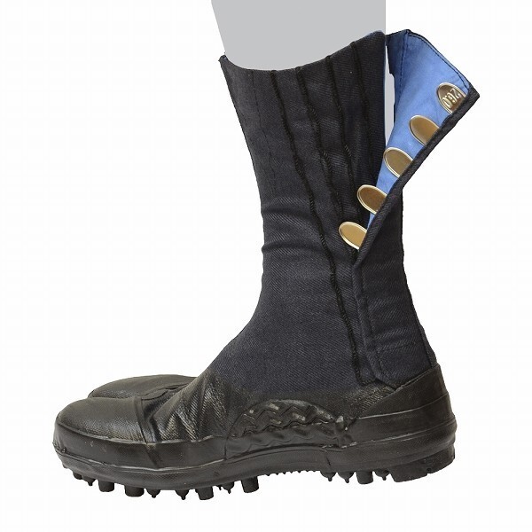 地下足袋にスパイク底で抜群の踏ん張り力!特に草の生茂った斜面などでその効果を発揮。ナイロン入綿布採用で綿布面も丈夫。アップダウンの激しい場所で、踵部の衝撃吸収スポンジが足の負担を緩和。