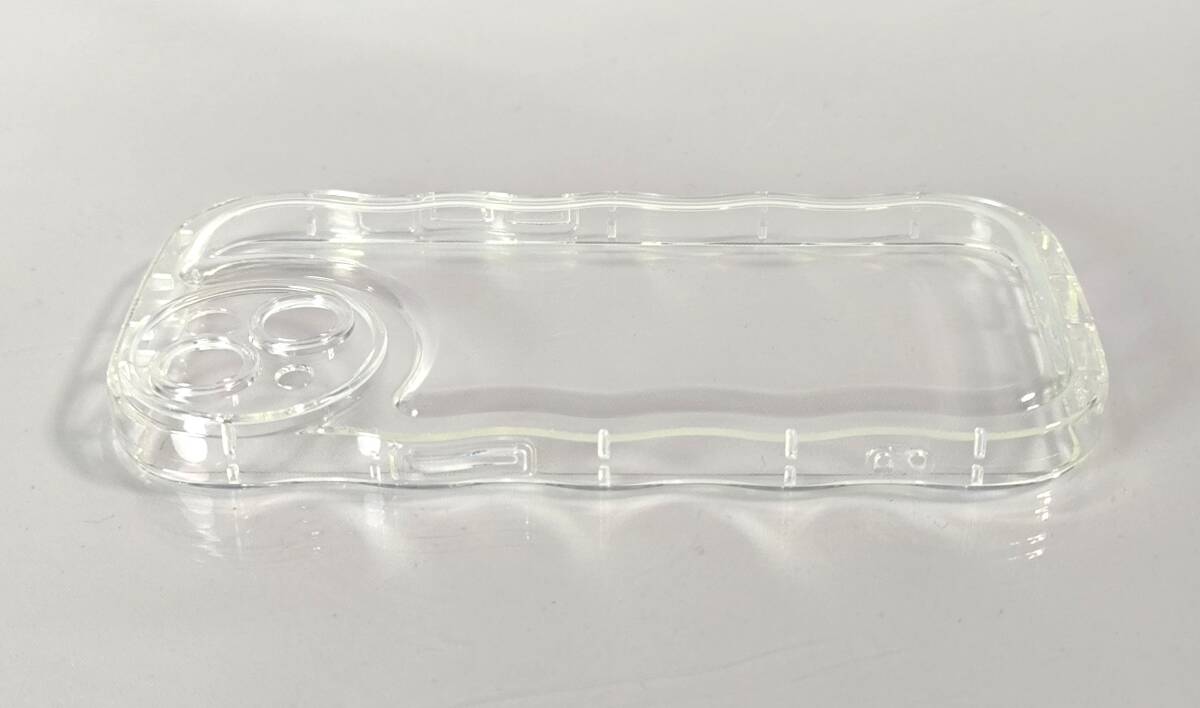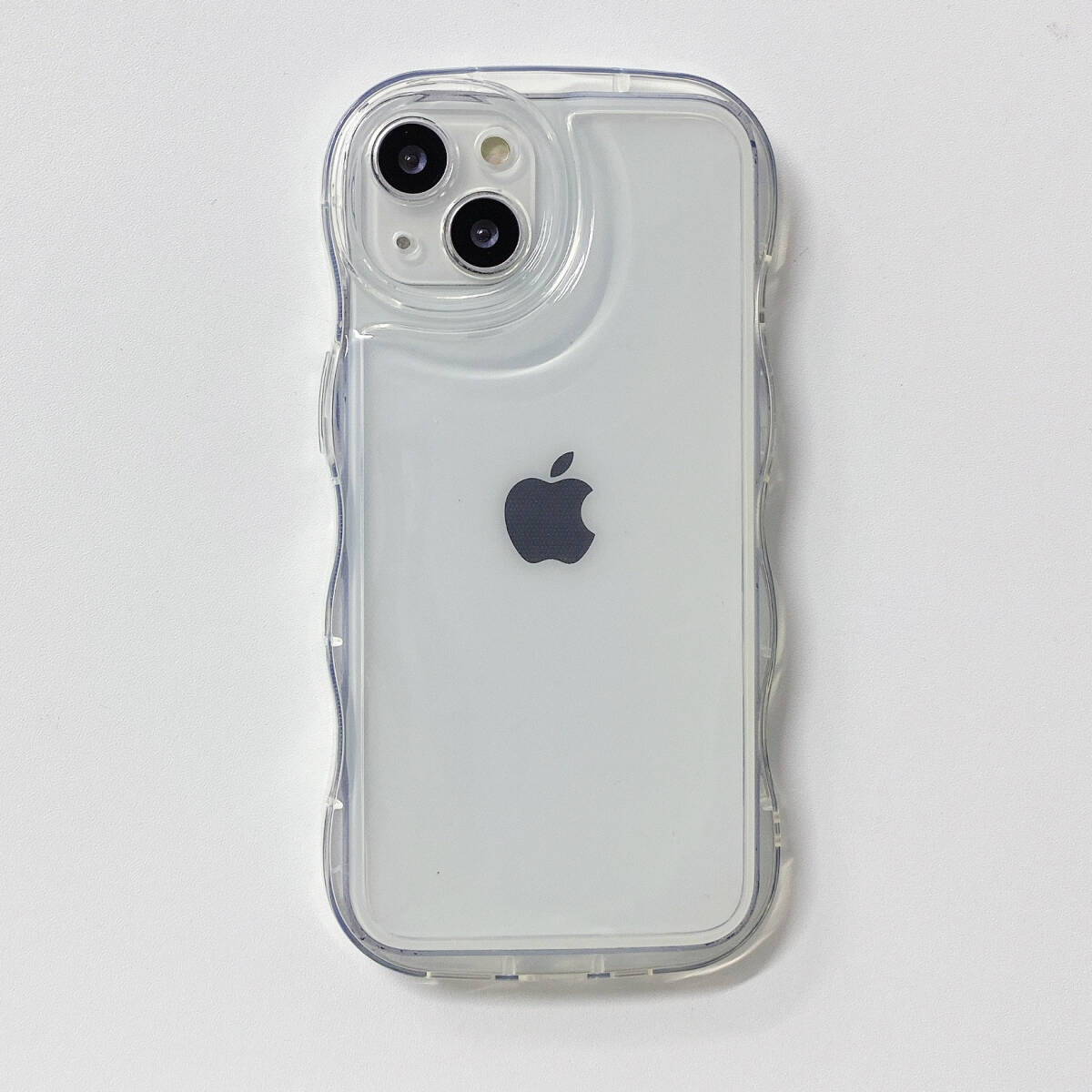 iPhone 14用 クリアスマホケース しっかり手にフィットする波型サイドケース 透明 PU素材