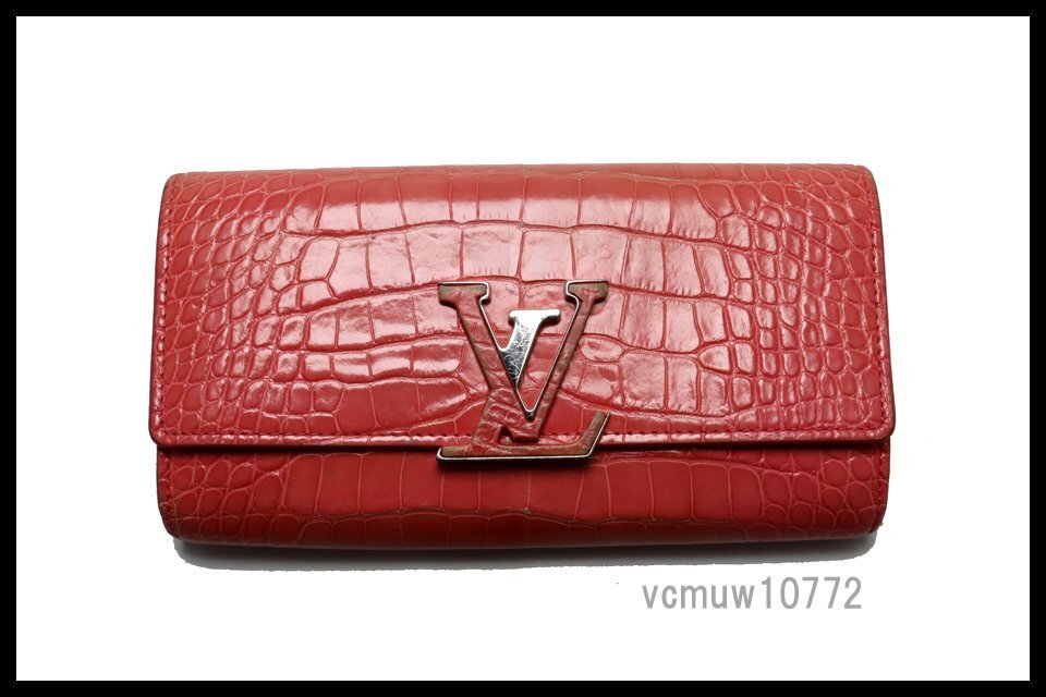 近年モデル希少美中古■LOUIS VUITTON ポルトフォイユカプシーヌ クロコダイル×レザー 2つ折り長財布 ルイヴィトン■0725db22104