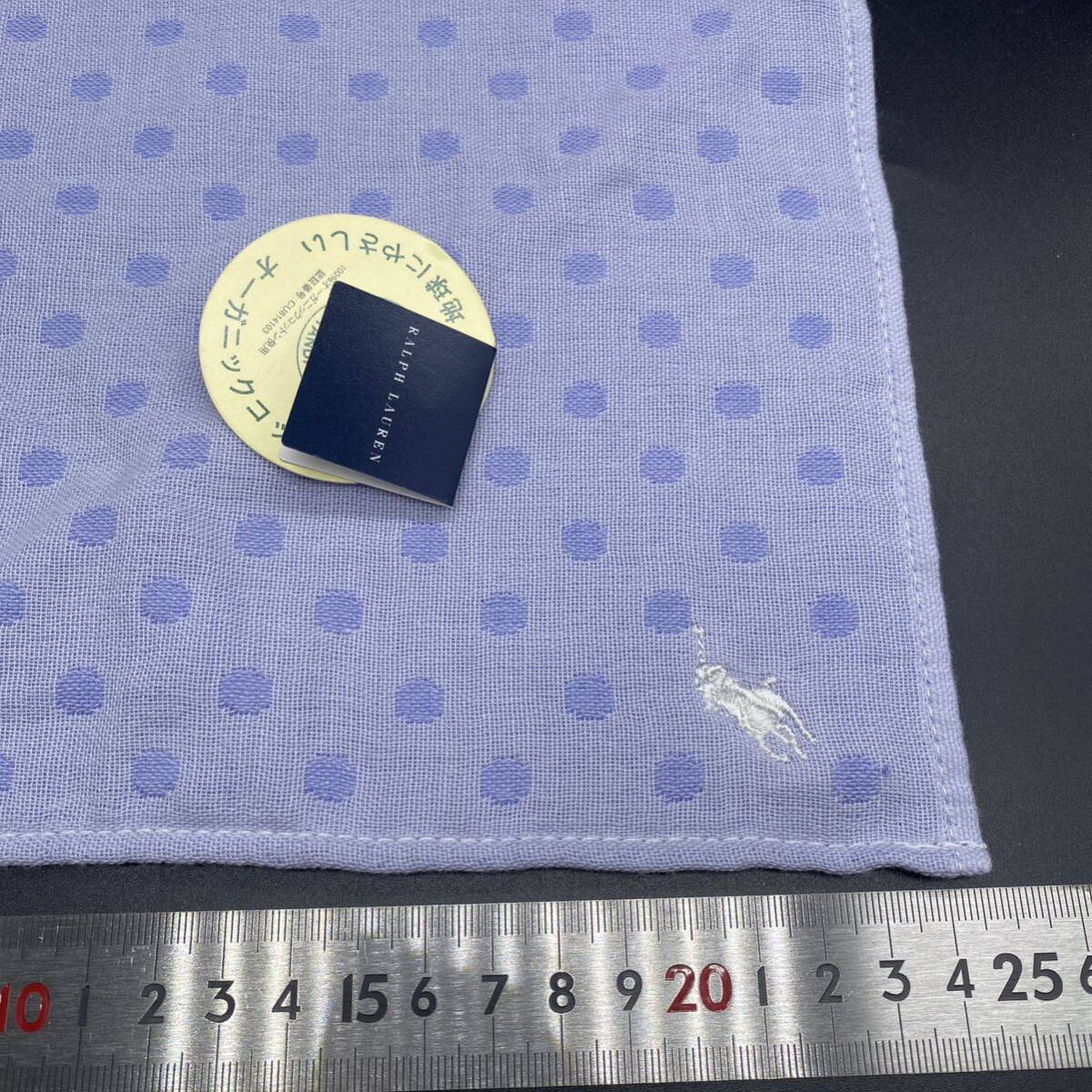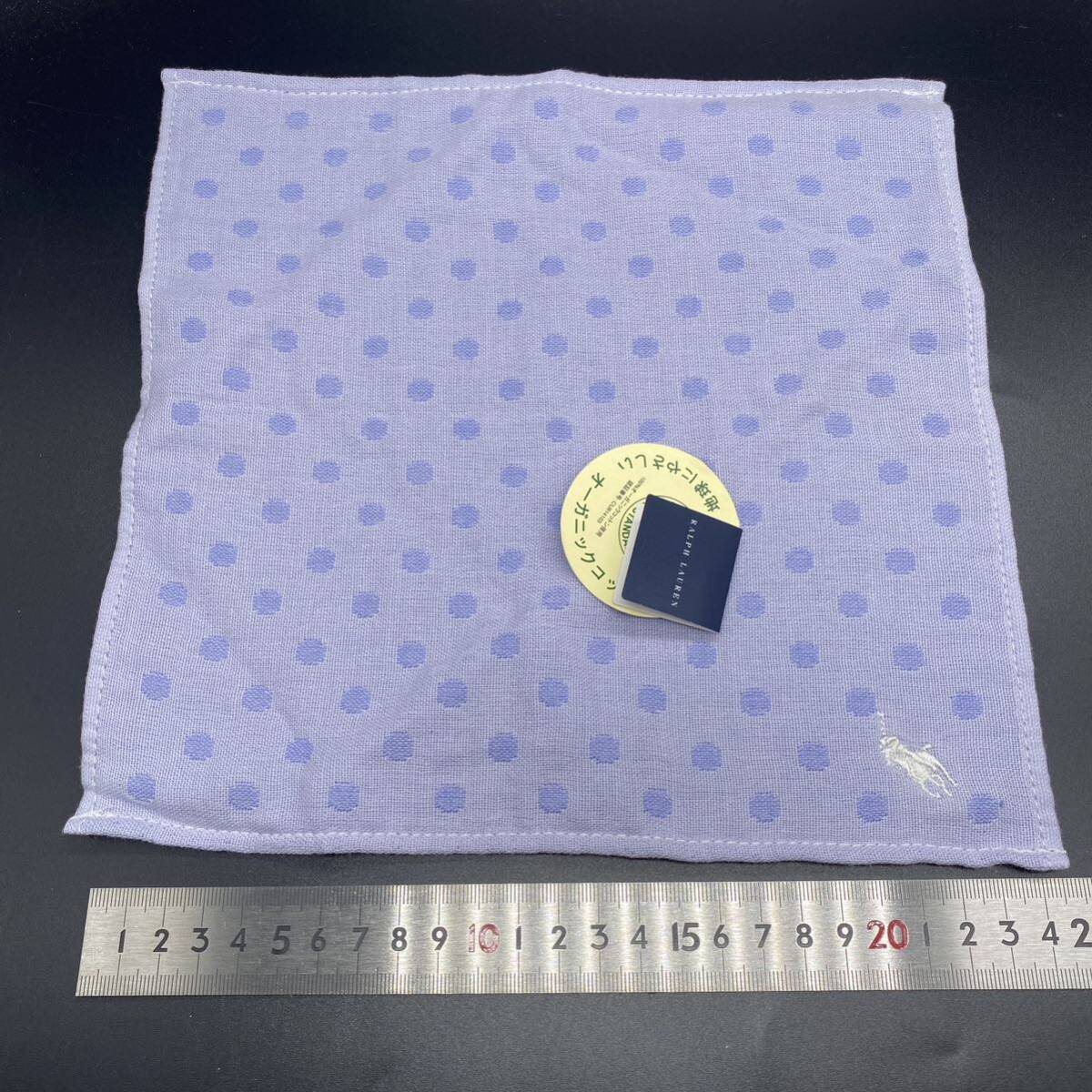 RALPH LAUREN ラルフローレン タオルハンカチ ライトパープル ドット ポロ刺繍 no.42