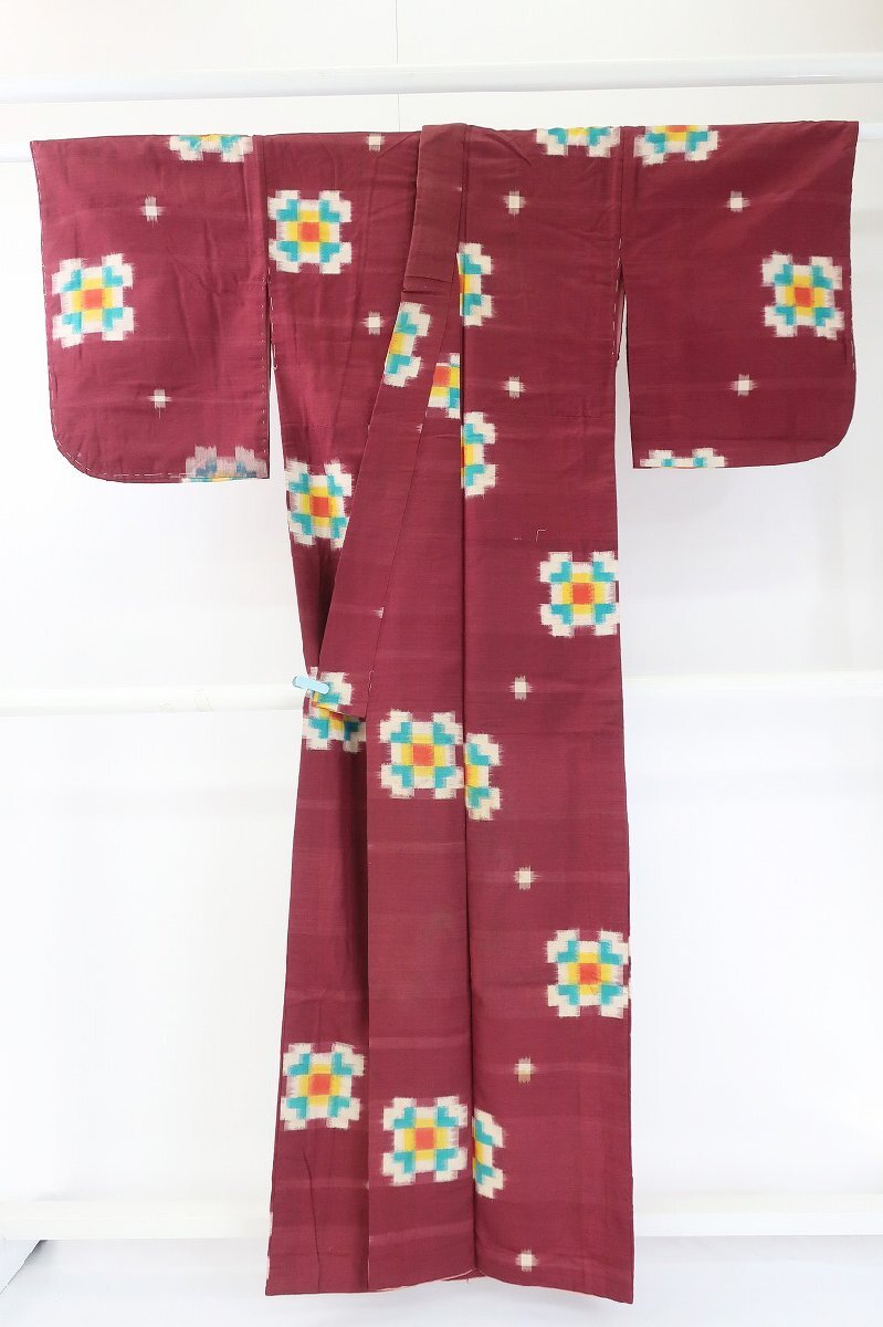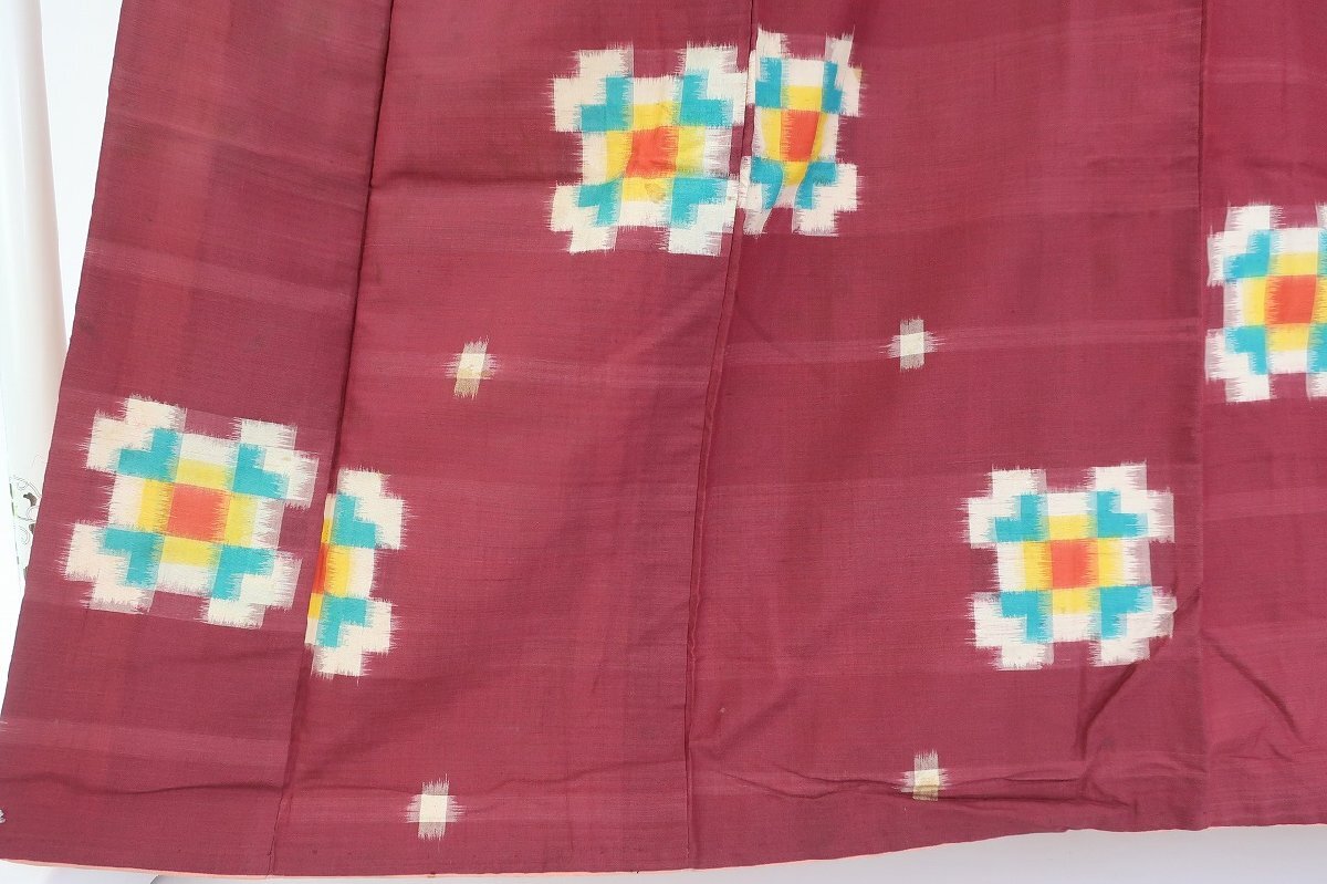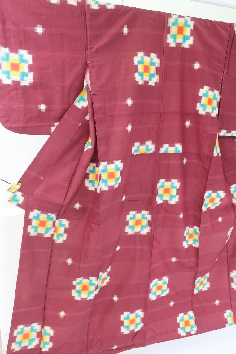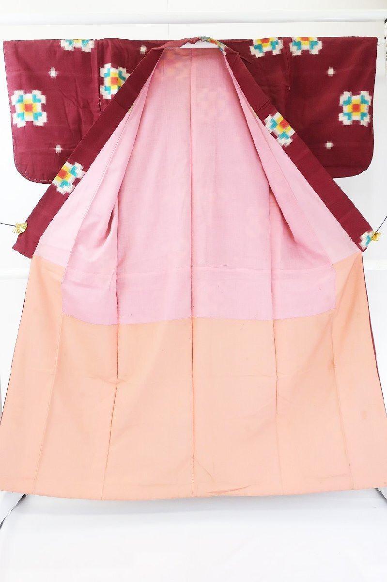 【着物フィ】アンティーク 小紋 銘仙 臙脂色 身丈157cm 袷 大正ロマン レトロ 正絹 仕立て上がり kimono 16537 |