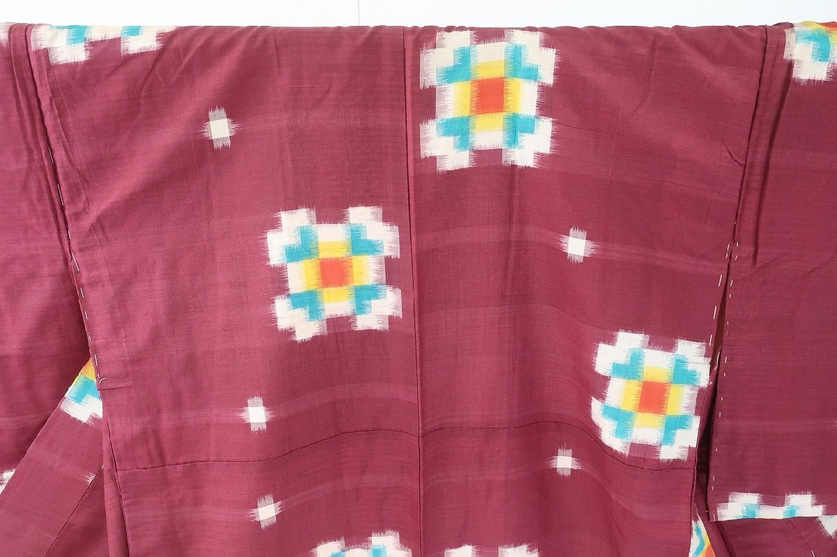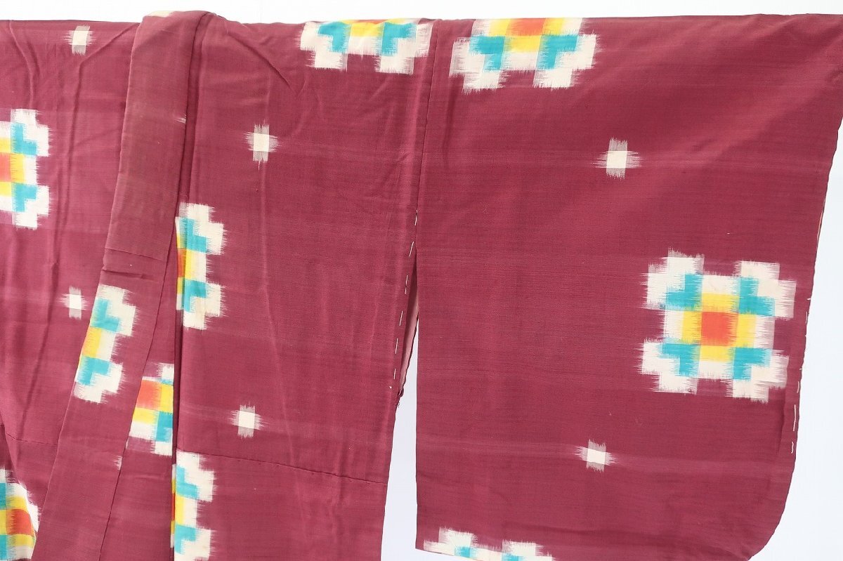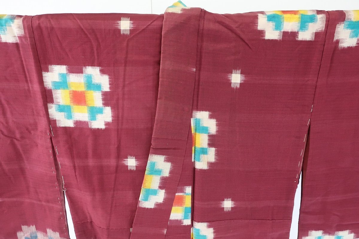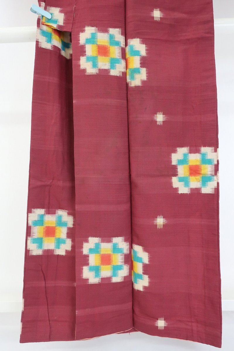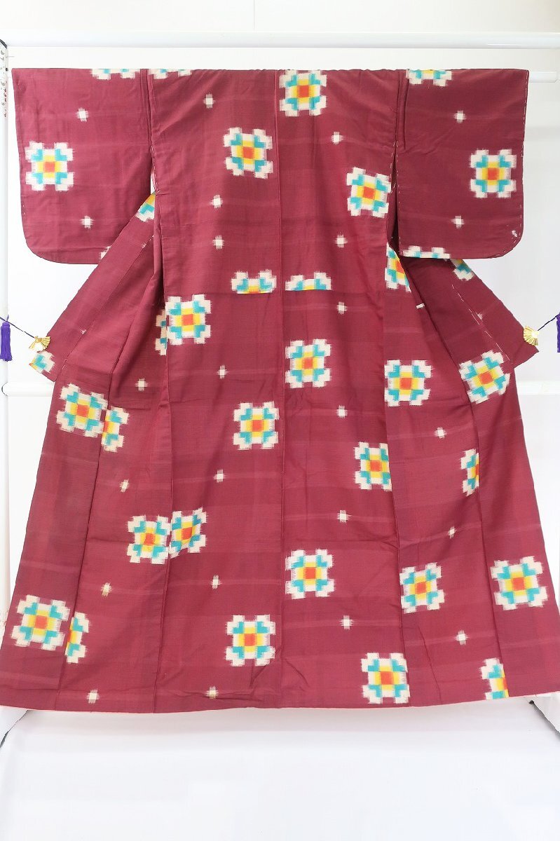 【着物フィ】アンティーク 小紋 銘仙 臙脂色 身丈157cm 袷 大正ロマン レトロ 正絹 仕立て上がり kimono 16537 |