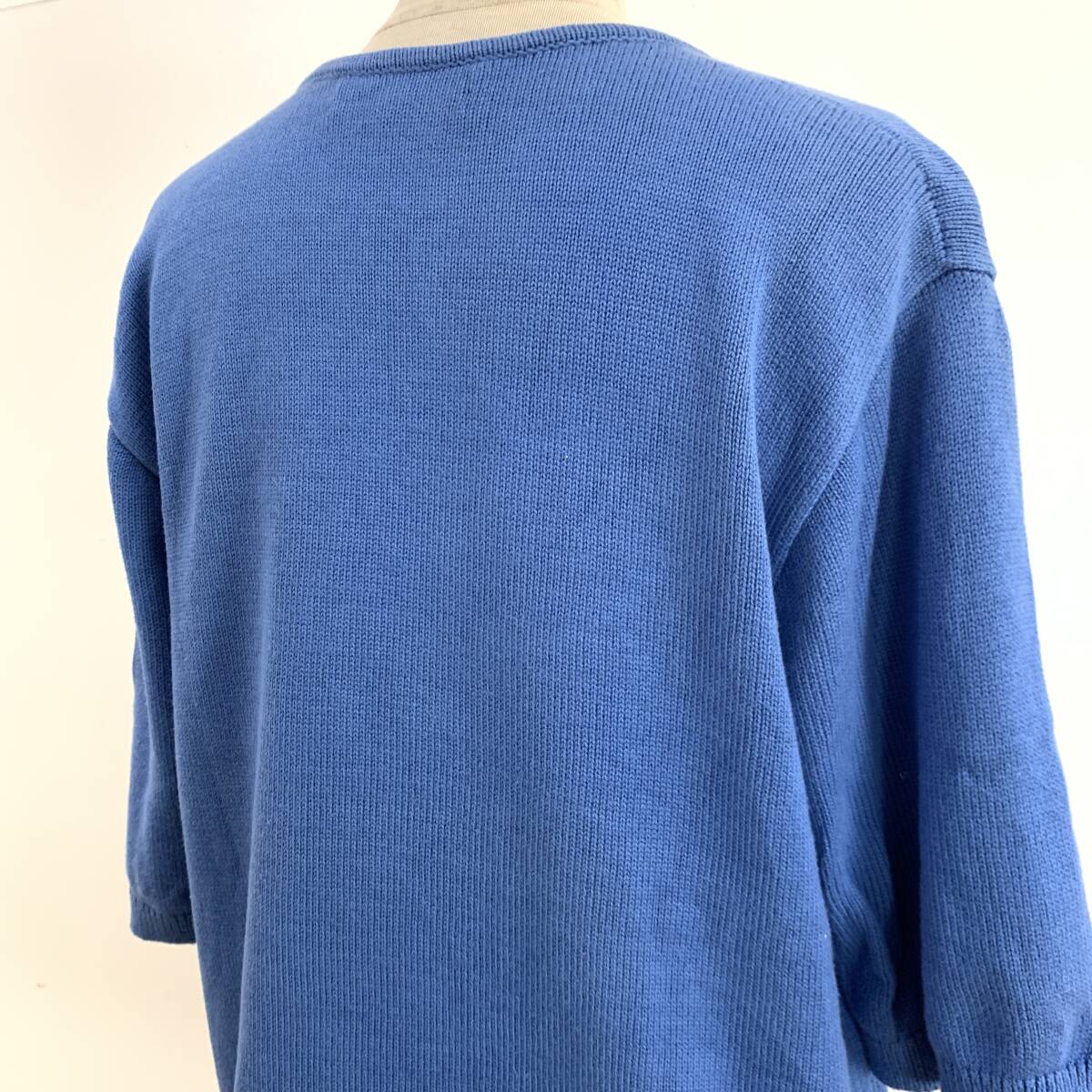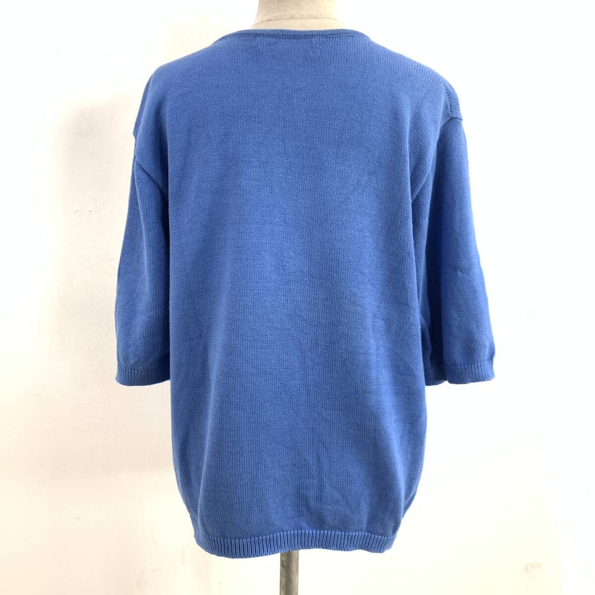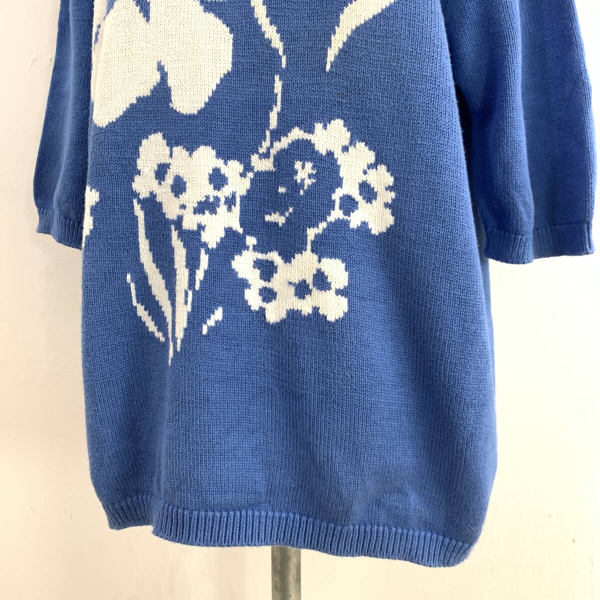 ☆HANAE MORI ハナエモリ 森英恵 Vintage 昭和レトロ 花柄 半端袖 コットンニット ブルー サイズM 綿100%【レターパックプラス郵送可】K