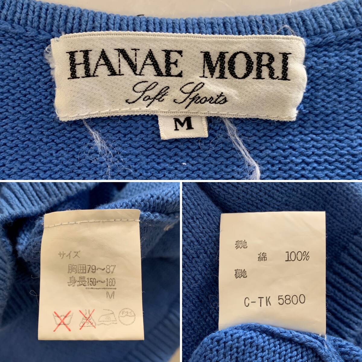☆HANAE MORI ハナエモリ 森英恵 Vintage 昭和レトロ 花柄 半端袖 コットンニット ブルー サイズM 綿100%【レターパックプラス郵送可】Kの出品です。