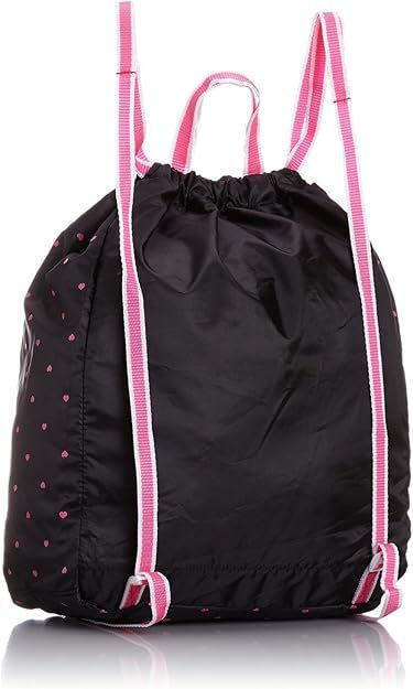 ハートがいっぱいプリントされた可愛いデザインのナップサックです。反射レザー付きで夜道も安心。広々としたマチ幅だからたっぷり収納できる。ショルダー部分は、調節可能なので長くご使用いただけます。通学やレッスンバッグ、水着入れなどにオススメです。