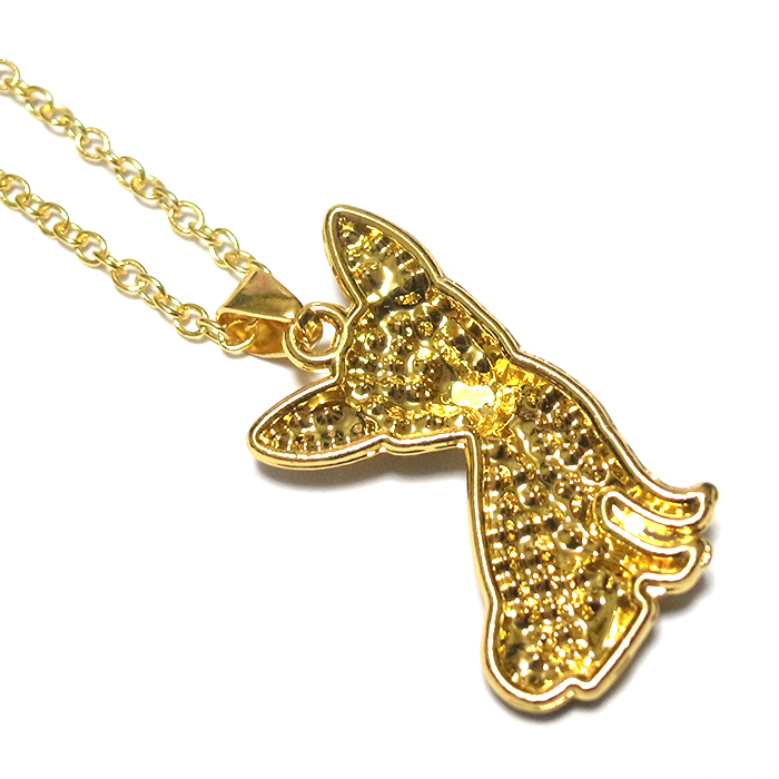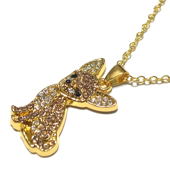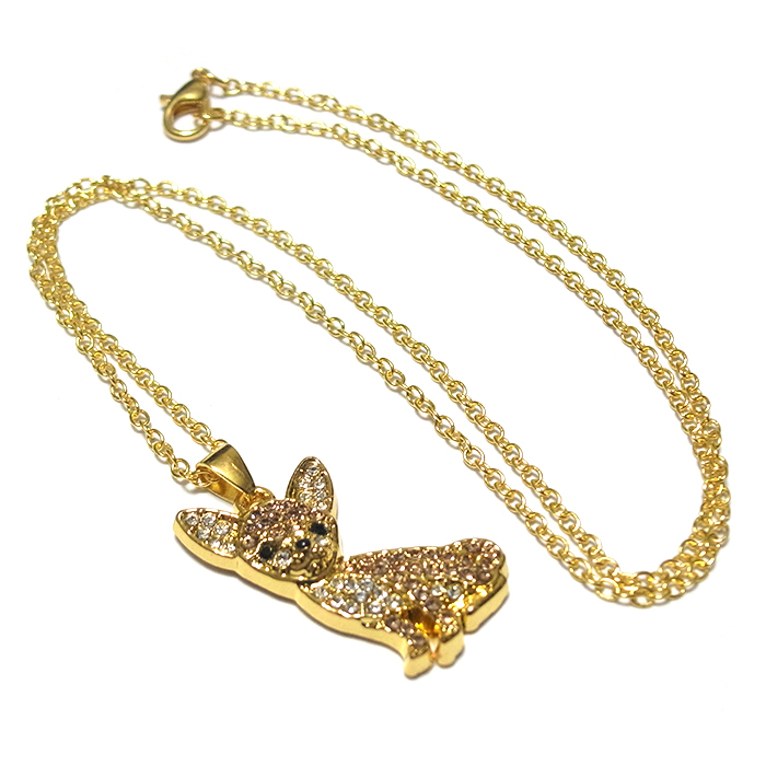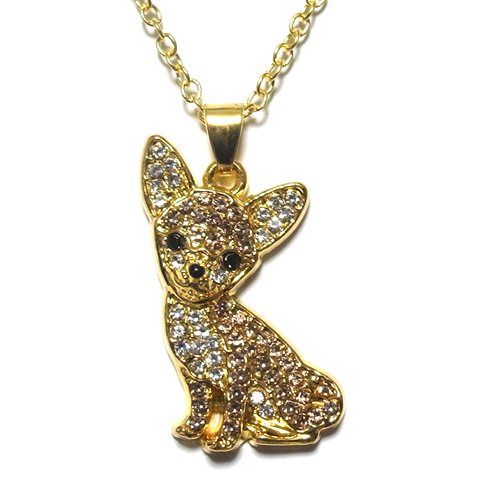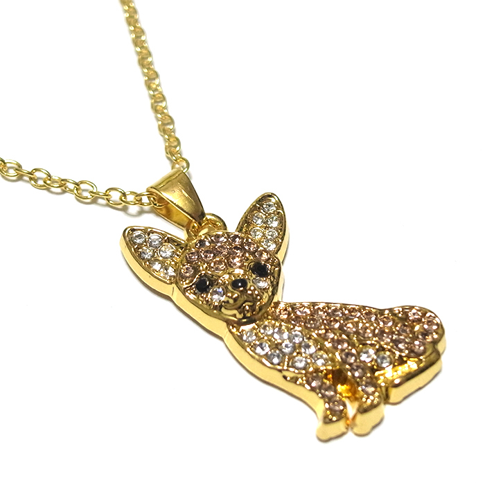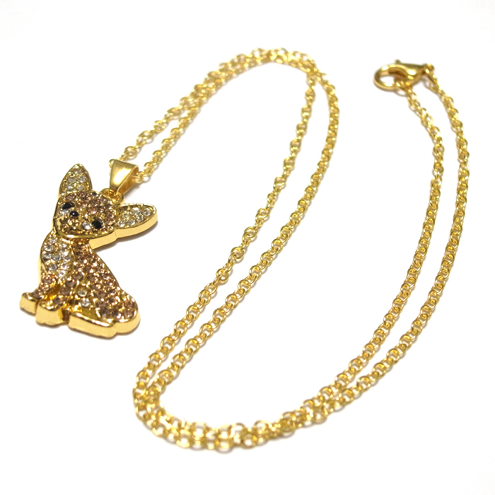 【ネックレス/ペンダント/チェーン】チワワ 愛犬 犬 イヌ ペット ラインストーン キラキラ ゴールド nec-0013