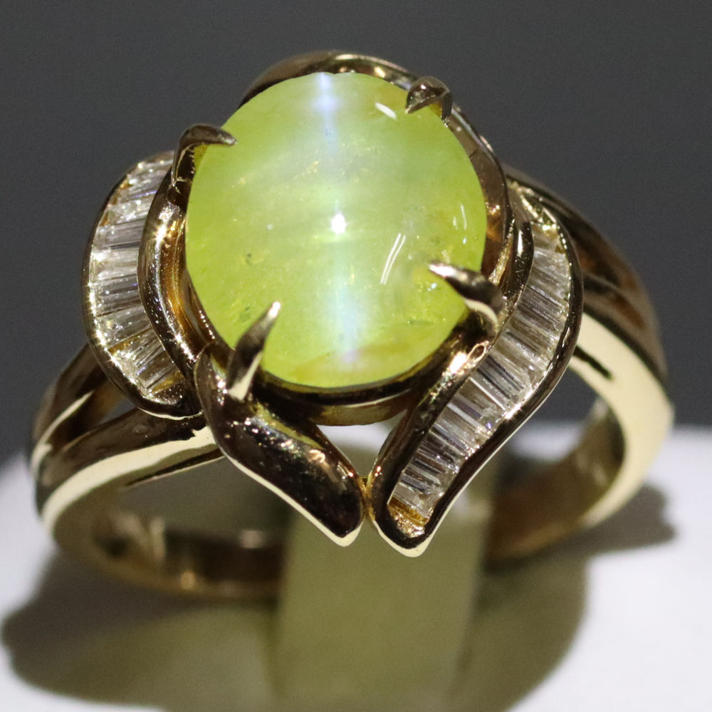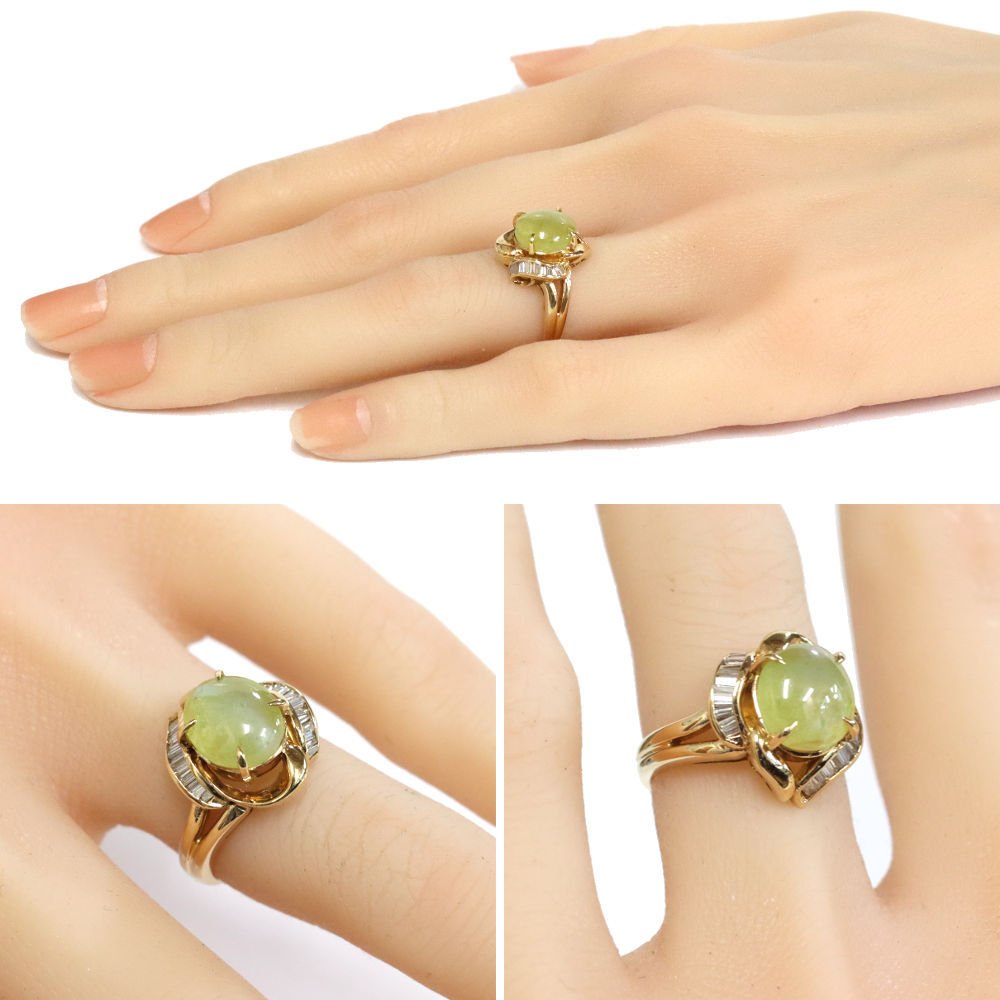 | ■ K18クリソベリルキャッツアイダイヤモンドリング 4.62 D0.23 6.4g #9 ■ | ||||||||||||||||||||||||||