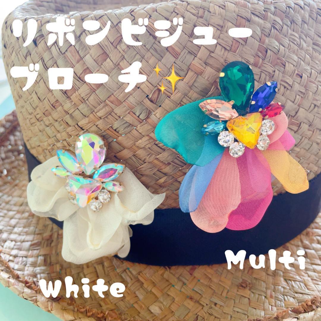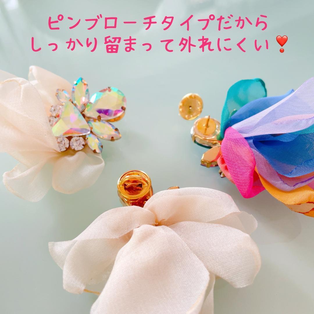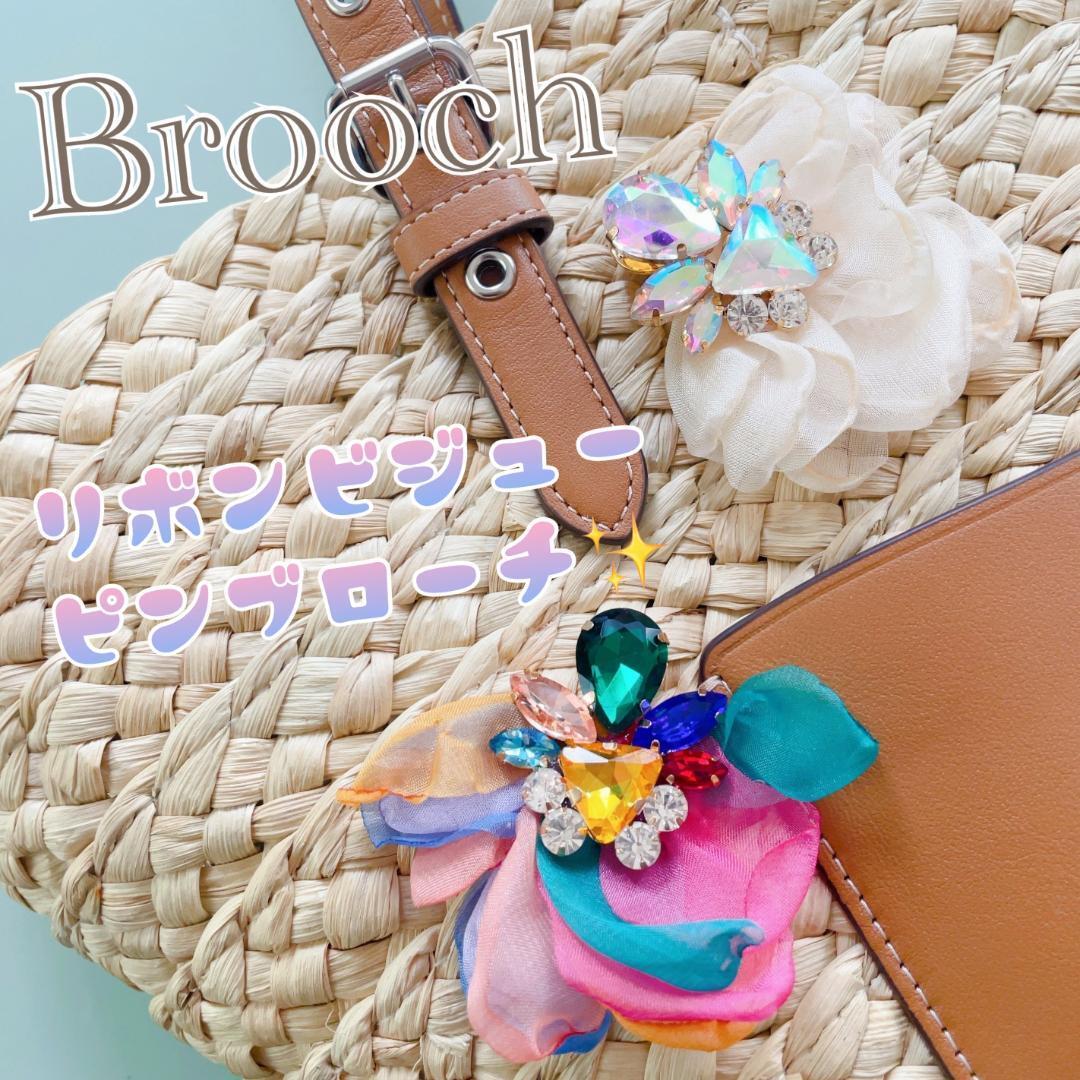きらきらのビジューとオーガンジーリボンのコンビネーションが華やかなブローチです☆
