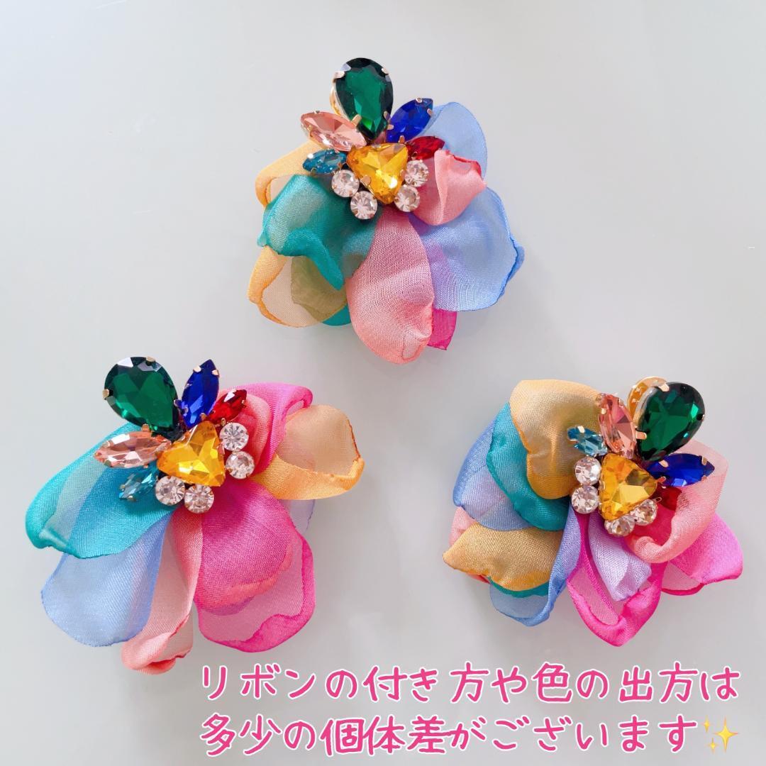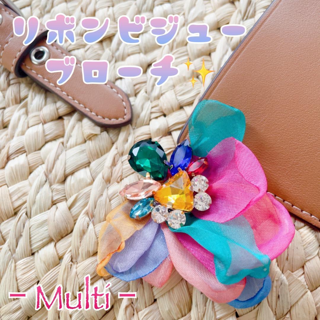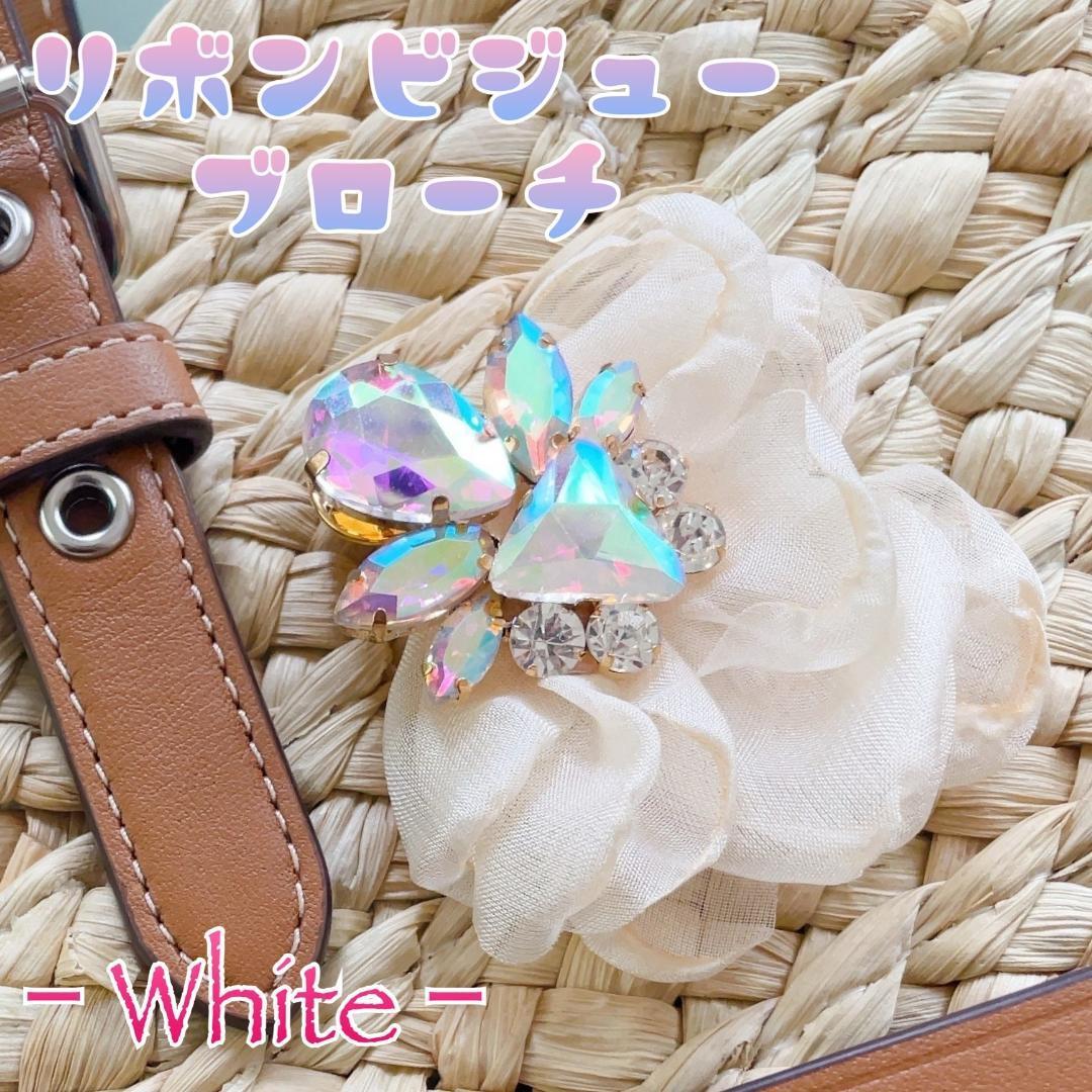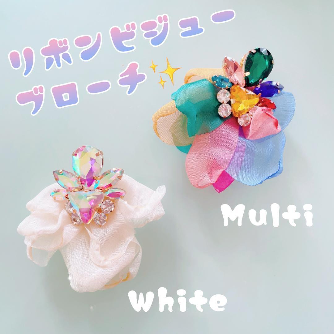 きらきらのビジューとオーガンジーリボンのコンビネーションが華やかなブローチです☆
