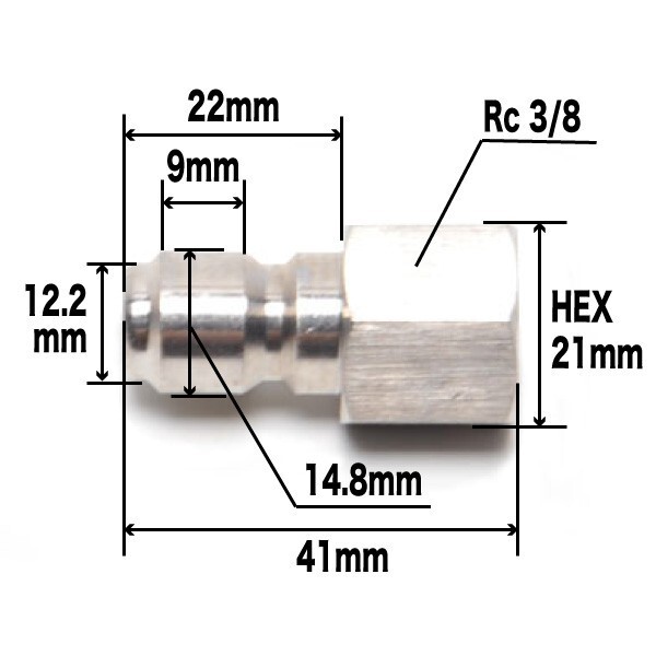 両端オスステンレス金具+3/8海外規格ワンタッチカプラ ソケット(メス)、プラグ(オス)