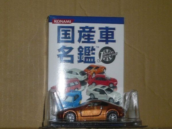 KONAMI 国産車名鑑 第1巻 日産フェアレディZ オレンジです。箱が少し傷んでいますので、ご了承の上入札ください。商品の状況は写真でご判断の上、ノークレーム・ノーリターンでお願いします。保証はできませんが、定形外郵便での発送も可能です。