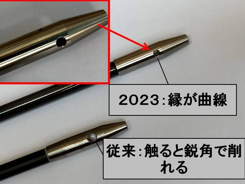 ・中心が太く先端と後端に向かって細くなる形状です。軽さと取り回しに優れています。中心部が太いので握り易くなってます。後端ストレートシャフトほど強いゴムは弾けませんが、軽量な構成で強いゴムは不要です。扱いやすいモデルになっています。