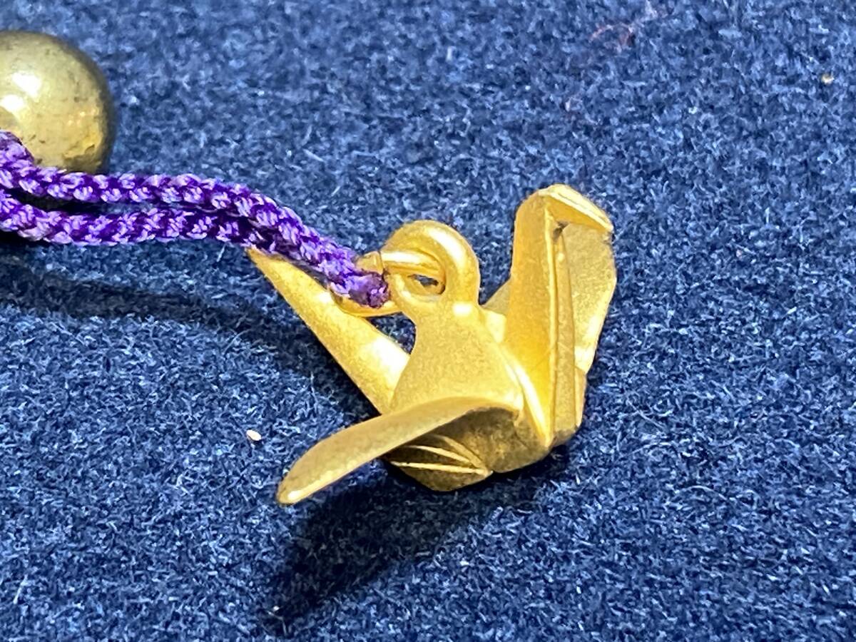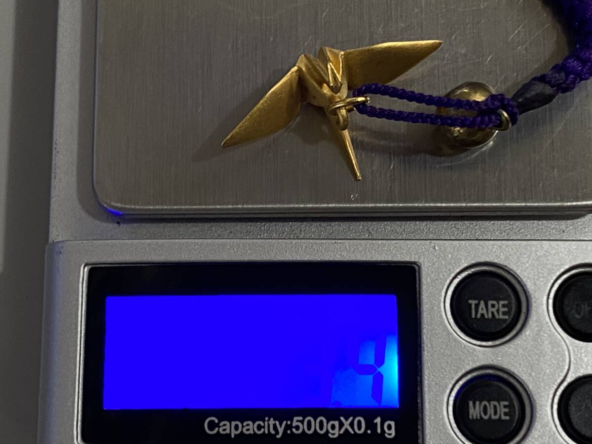 非鉄金属 金色 折り鶴  鶴と小鈴 商品。