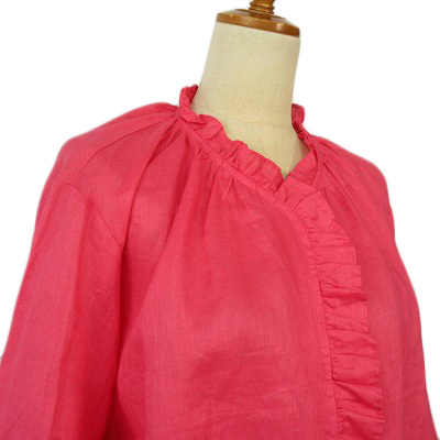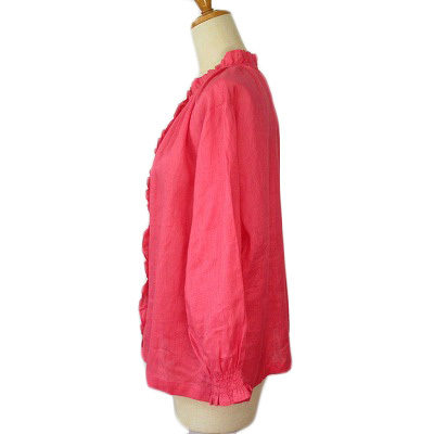 ドゥクラッセ DoCLASSE 21番リネン フリルトリムVネックブラウス 7 ピンク レディース