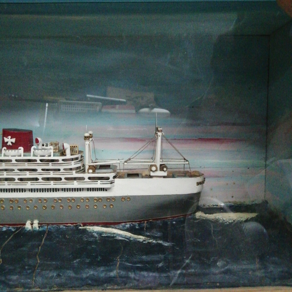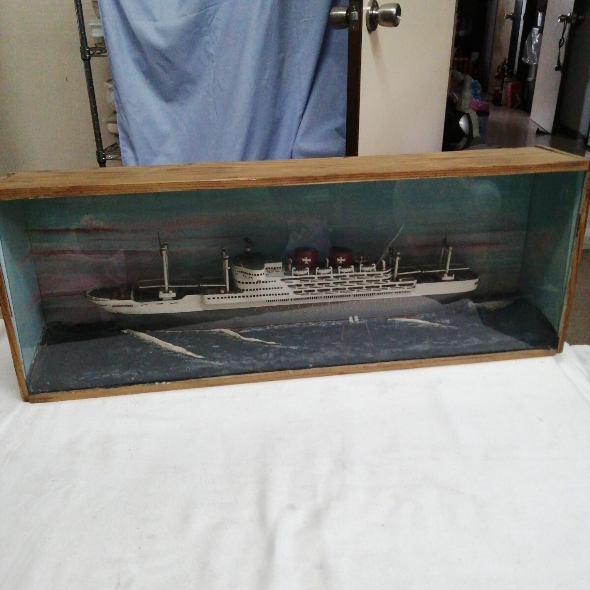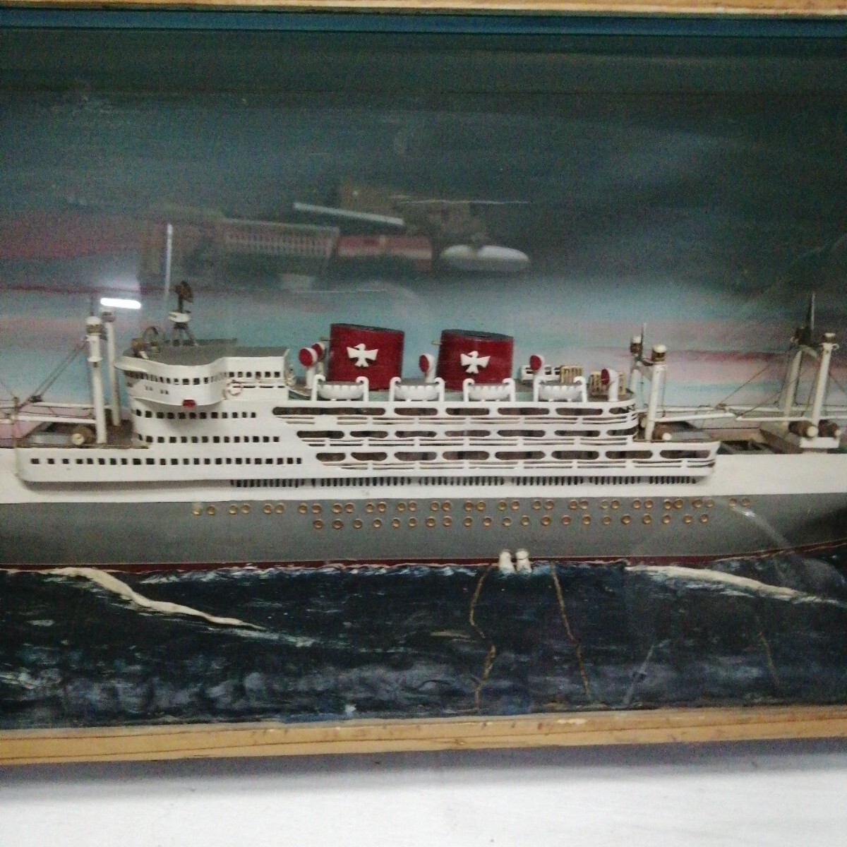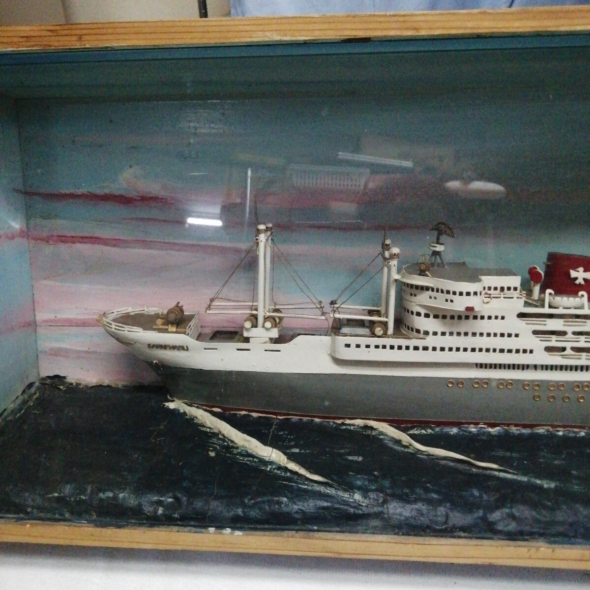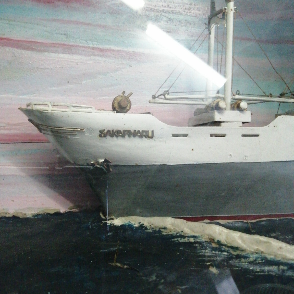 船 模型 栄丸 木箱 硝子 ガラス 海 SAKAE MARU 大船 (約815×305×150mm)
