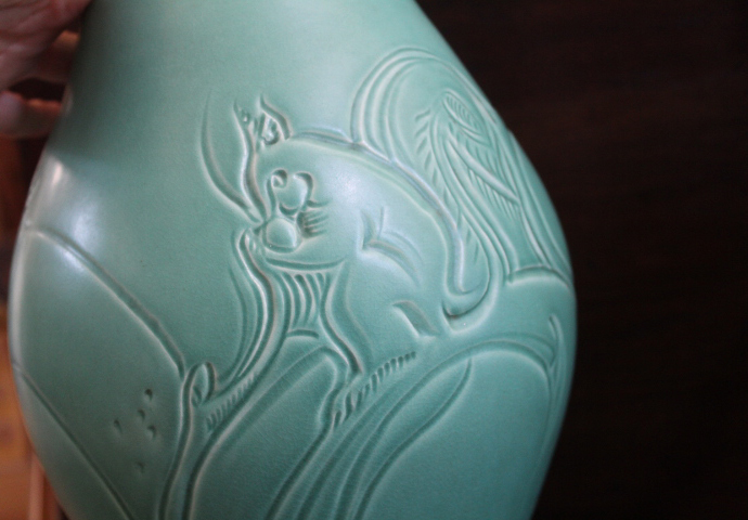ヴィンテージ【スージークーパー 初期作品】動物 花瓶 フラワーベース グリーン