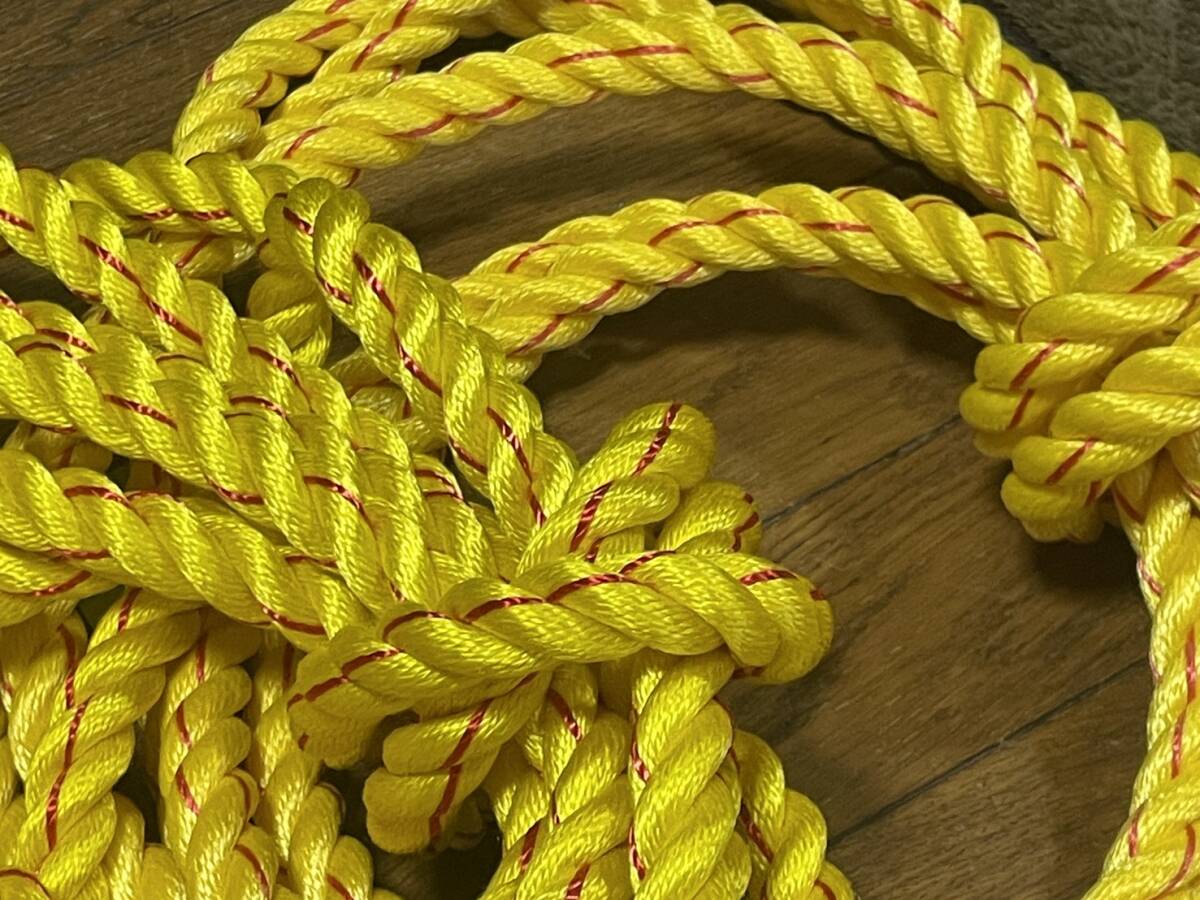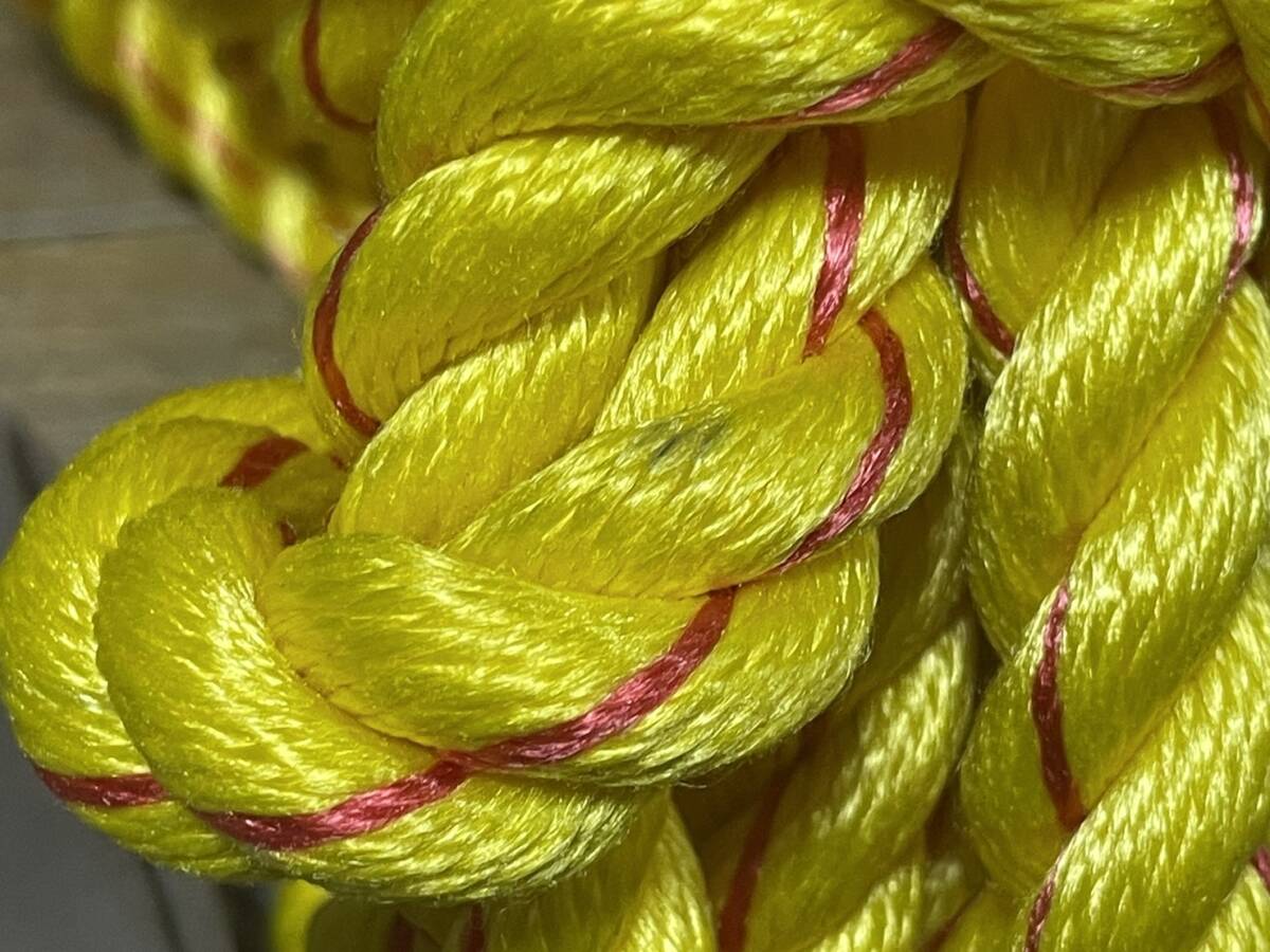 大特価!新品・国産★3巻セット//黄色・赤入り/ニューテトロン 三つ打ちロープ 芯あり★