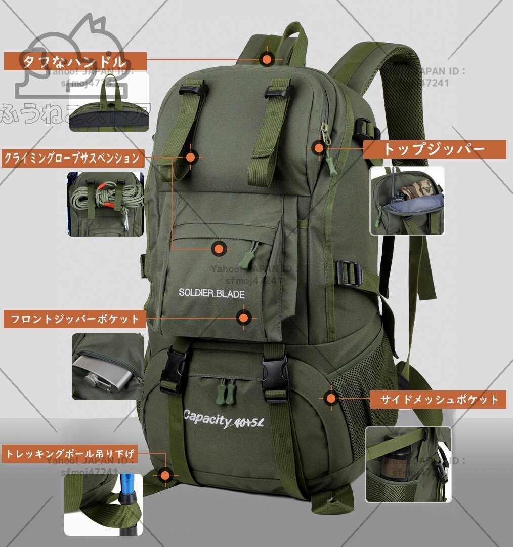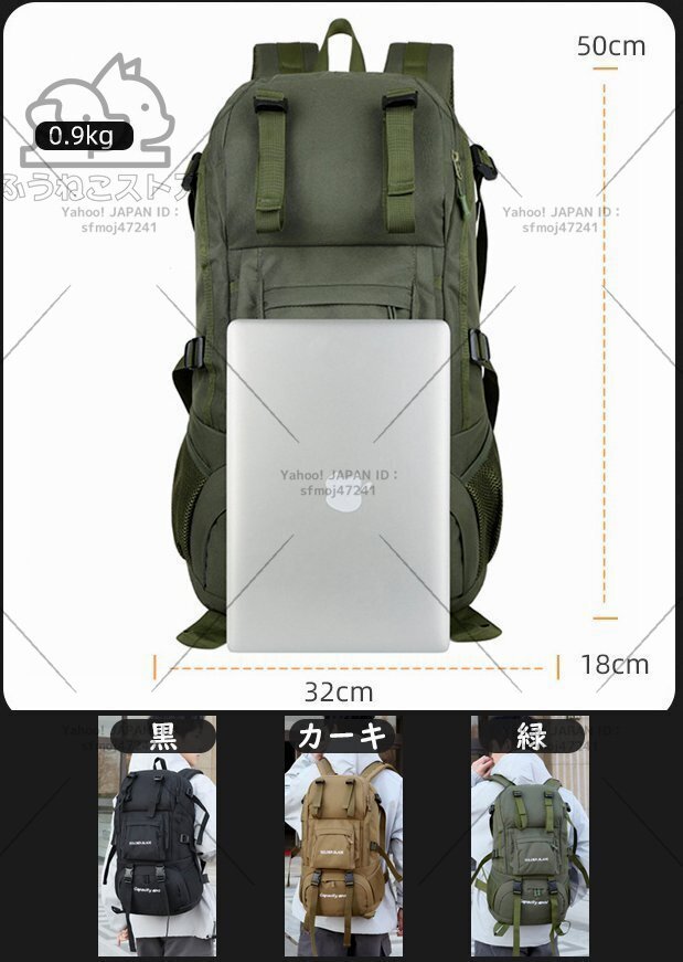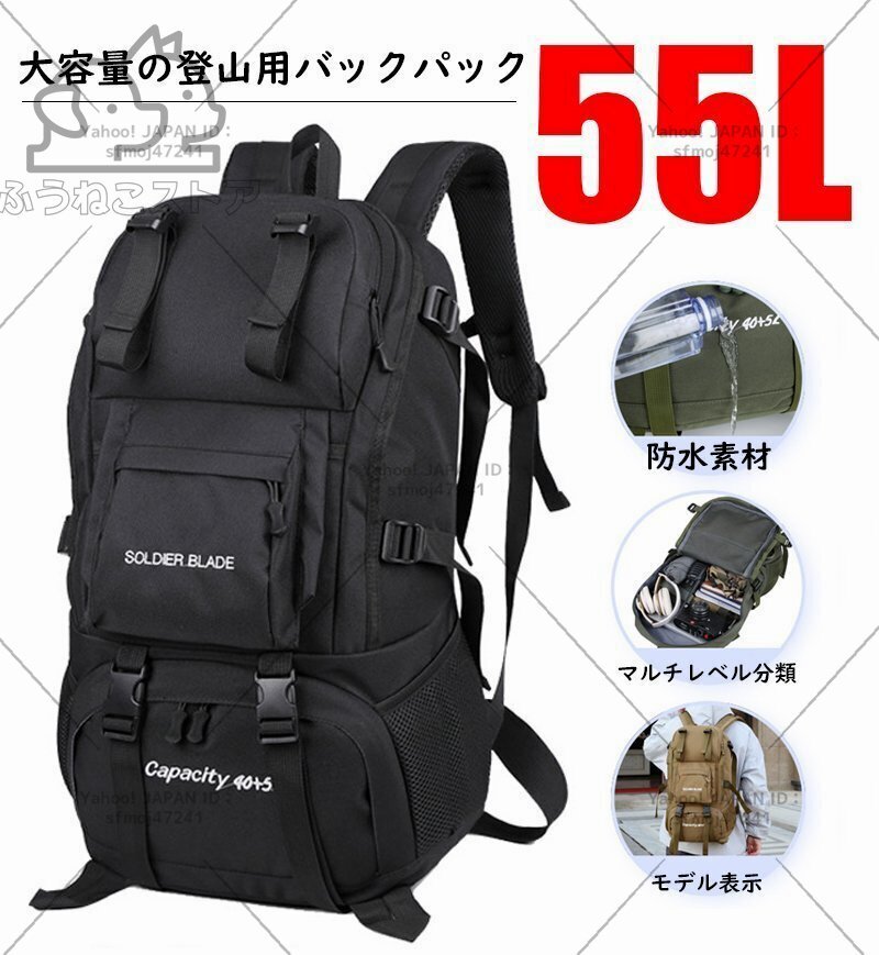 リュック バックパック 55L 大容量 多機能 丈夫 頑丈 通学 登山 旅行 1泊 宿泊 撥水 防災 ブラック