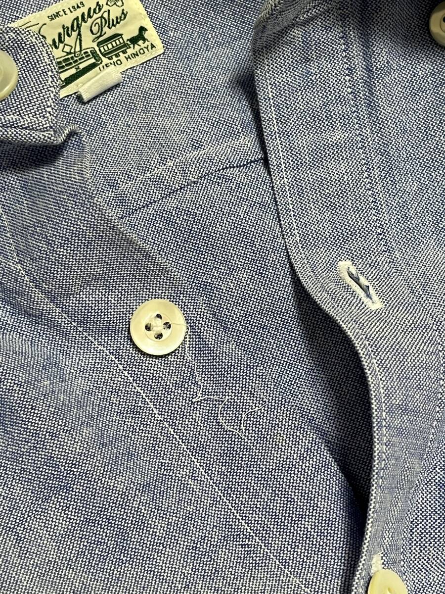 BURGUS PLUS 半袖シャツ サイズS シャンブレ 隠しボタンダウン ヒノヤ バーガスプラス HINOYA アメカジ ワーク ビジネス