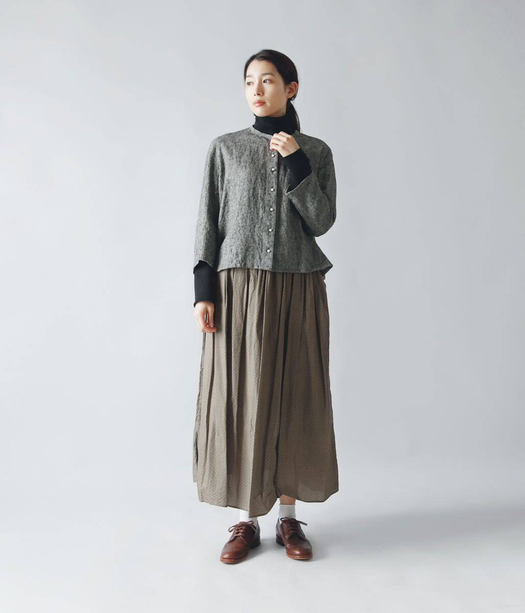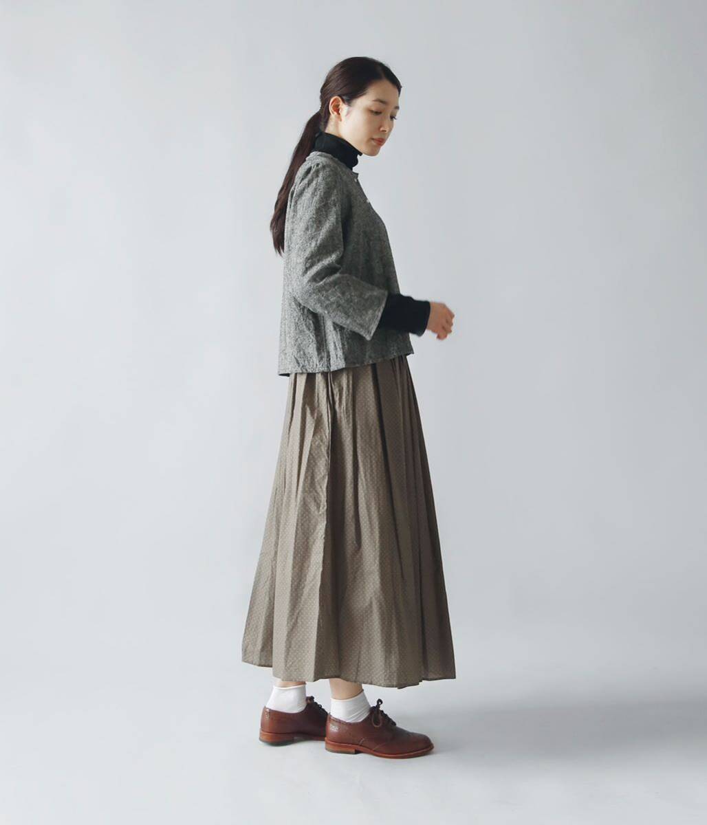 TOUJOURS定番のプリーツスカートが季節感ある落ち着いたカラーリングとなりました。