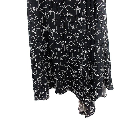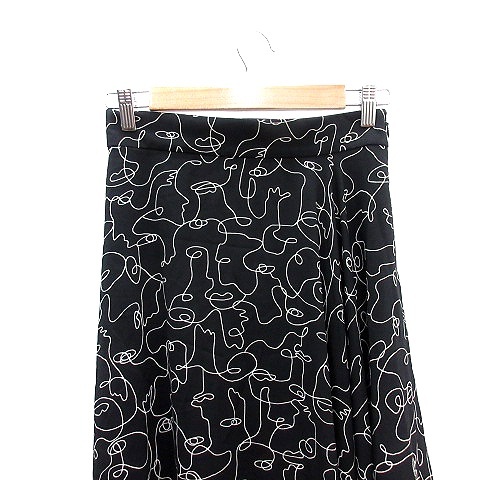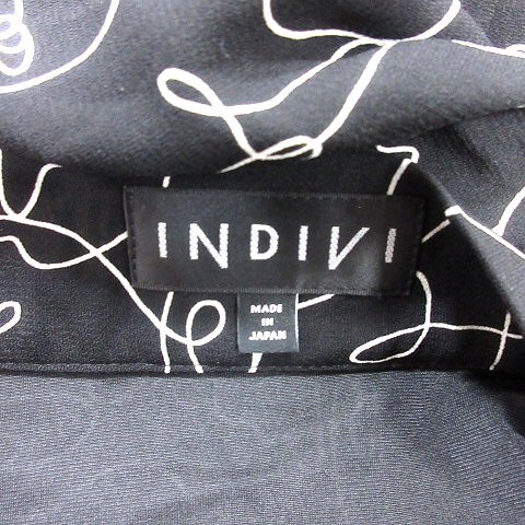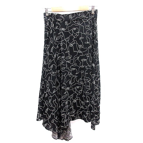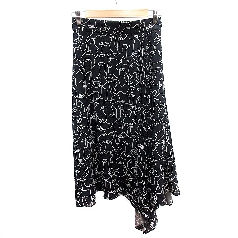 インディヴィ INDIVI フレアスカート ミモレ ロング アシンメトリー 総柄 36 黒 ブラック /AU レディース