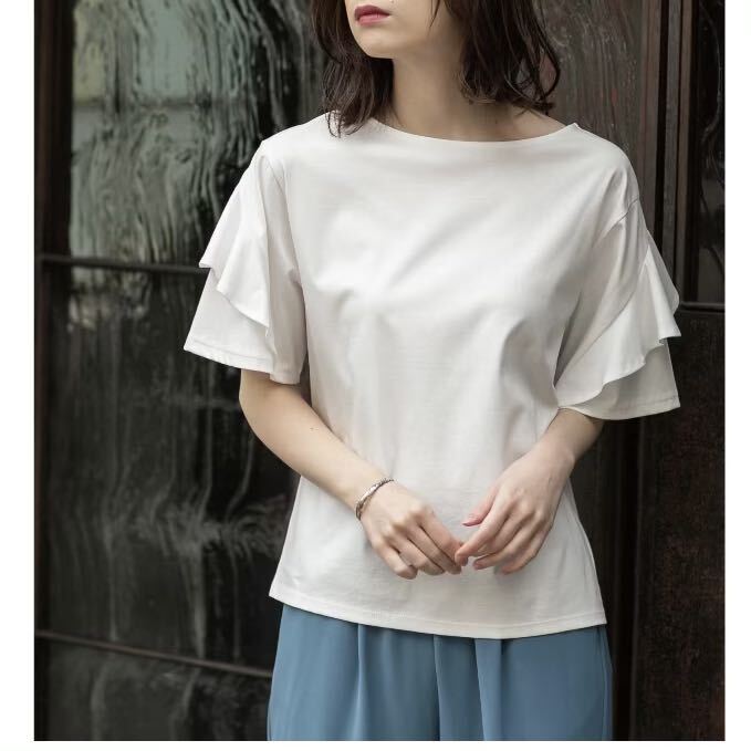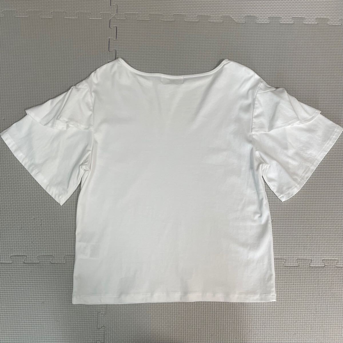 OPAQUE.CLIP スーピマコットン Tシャツ カットソー レディースS 白 ホワイト 袖フリル オペークドットクリップ ワールド トップス ブラウス