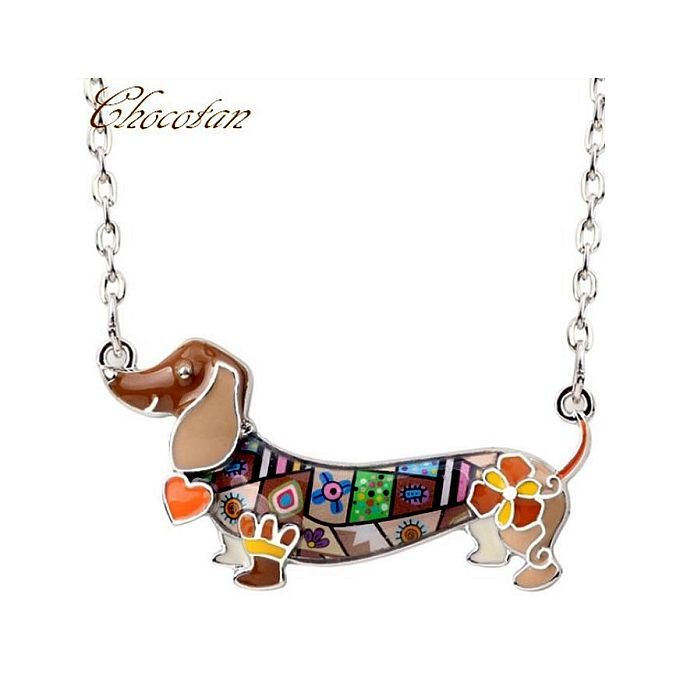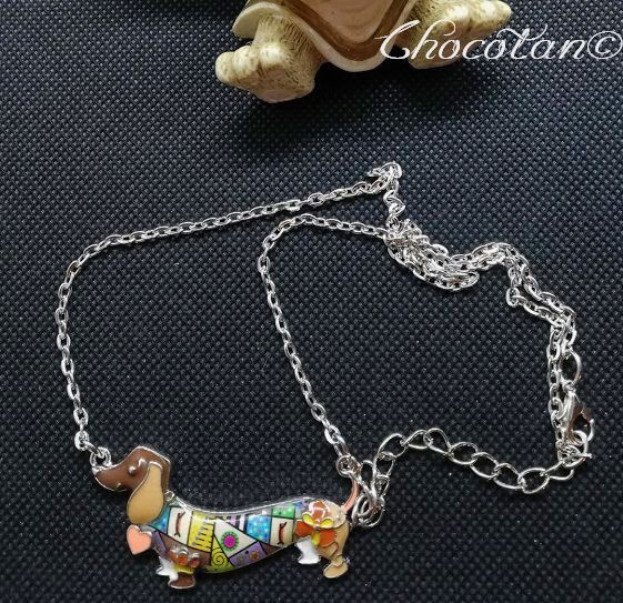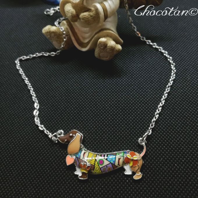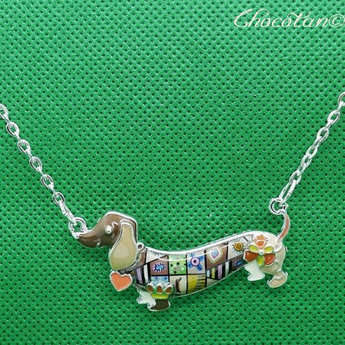 ダックスフンドの素敵な エナメルネックレス 茶です。