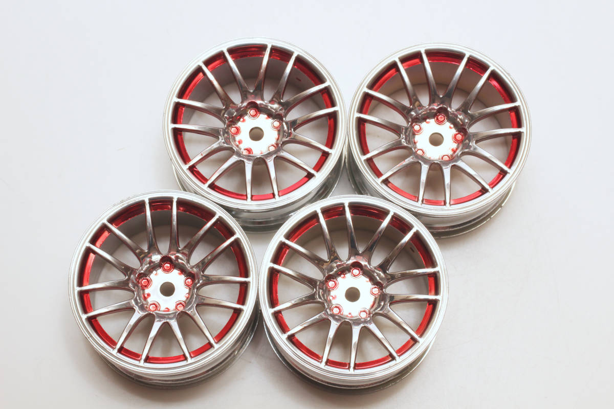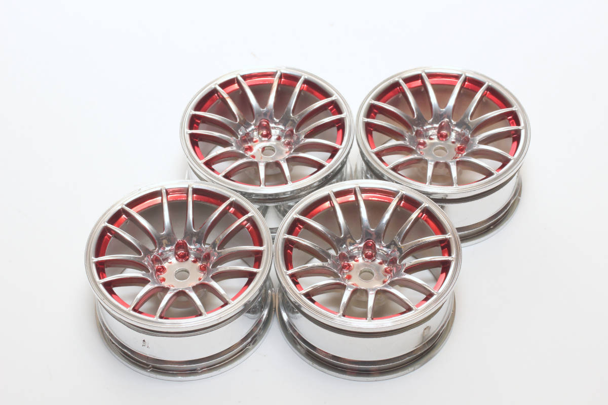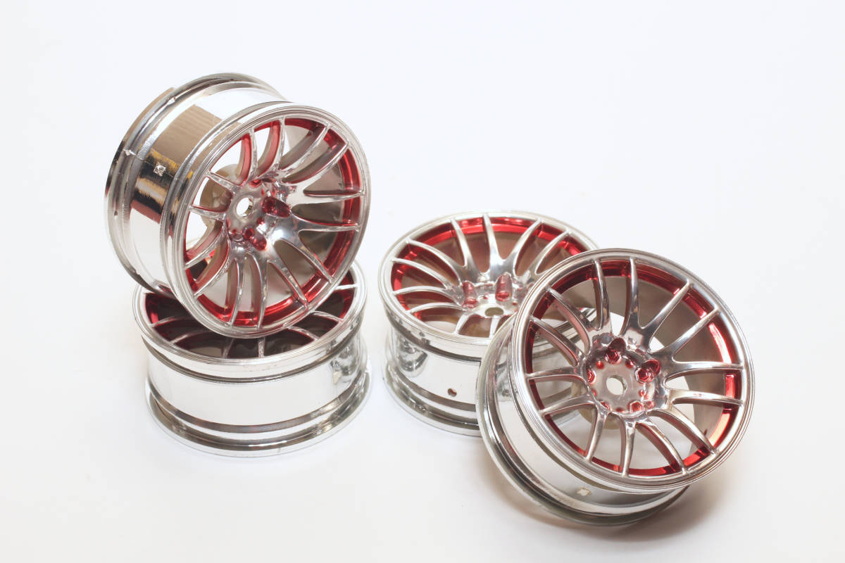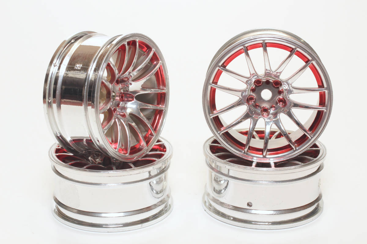 1/10 ツーリングカー向け コンケーブ クローム/レッド12スポークホイール4本セット