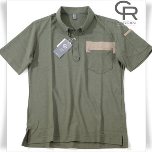 ※CAREAN キャリーン カノコ素材 半袖ボタンダウンポロシャツ カーキ 吸汗速乾 脇下消臭テープ付き ゴルフ です。