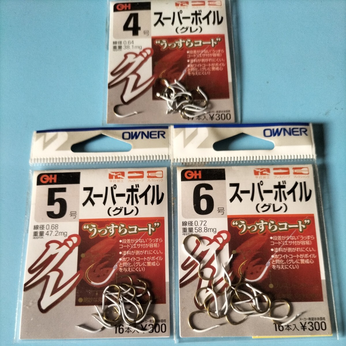 オーナー磯 スーパーボイル4号定価300円17本入りとスーパーボイル5号6号の3枚セット在庫処分品。
