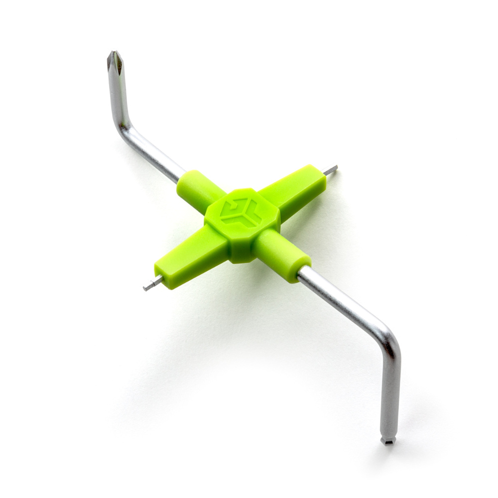 4つの異なる機能を装備:トラス・ロッド調整用の 1/8インチ ボール・エンド六角レンチ、ブリッジ調整用の 1/16インチと 0.05インチの六角レンチ、そしてネックやピックガードにあるような#1と#2の両方のネジに対応する形状のカスタム・プラス・ドライバー・ビットです。