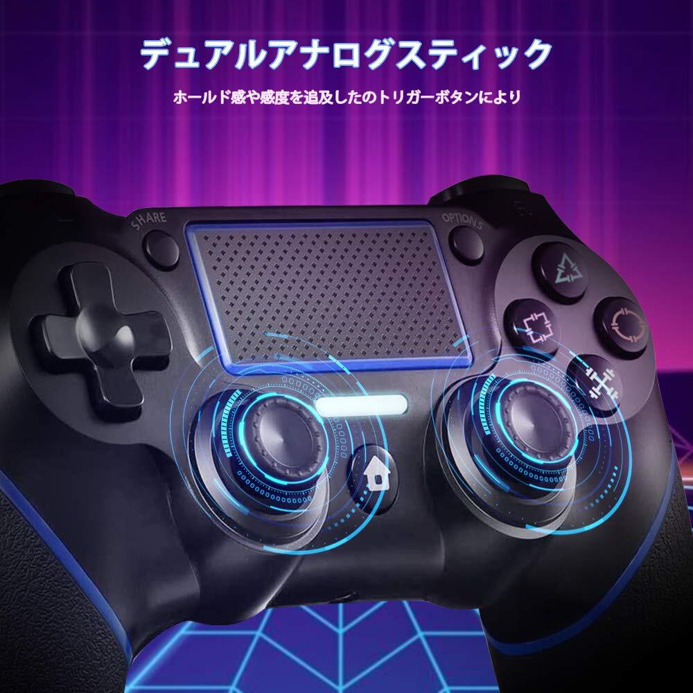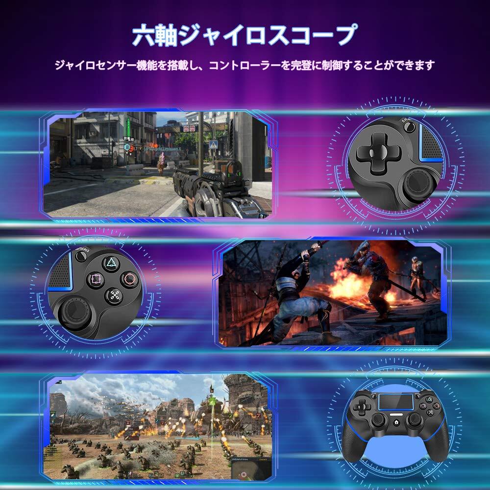 【多機能】デュアルバイブレーション、加速度・重力感覚、ジャイロセンサー、3.5mmイヤホンジャック、LEDランプなど、各種機能に対応,6軸センサー搭載したコントローラーで、臨場感いっぱい溢れます。センシティブなタッチコントロールパネルを備えたワイヤレスコントローラーで、共有ボタンで新しい遊び方を楽しめます。注:FPS、TPSとのゲームにはあまり向いていません。製品に問題がある場合は、コントローラーの背面にある穴を押してリセットし