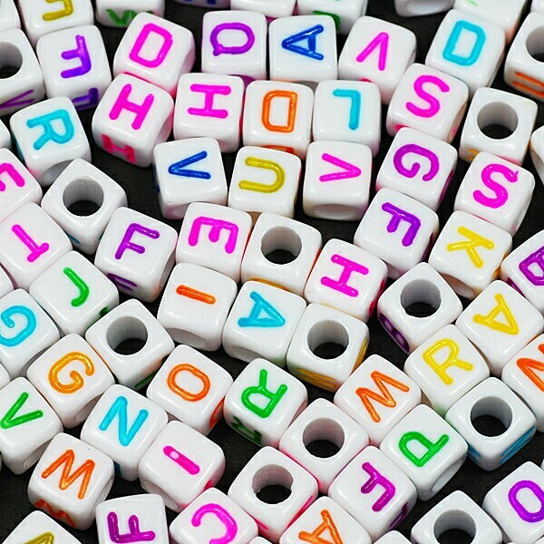 ●小さめ6mmキューブのプラ製アルファベットビーズです。●文字もカラーもランダムなミックスカラーパックです。(文字やカラーはご指定出来ません、すべての文字やカラーが揃っている保証はありません)●1パックは20グラム(おおよそ127~129コぐらい)です。●サイズ:約6mm角、穴は約3.5mm●素材:プラ製●大きめの穴が空いていますので太さ3mmぐらいまでの皮ひもゴムひもなどが通せます♪●名前やイニシャル、LOVEメッセージ、電話番号など使い方はさまざま!