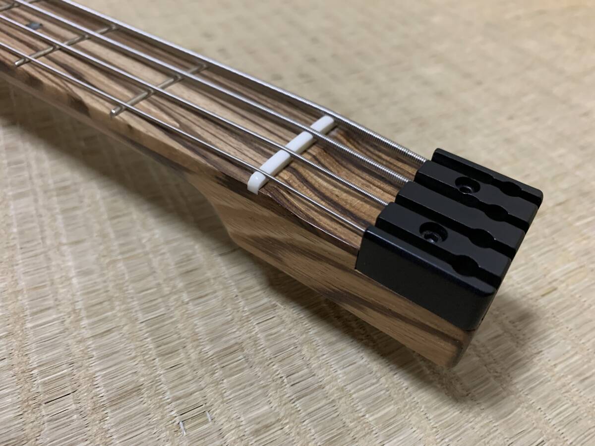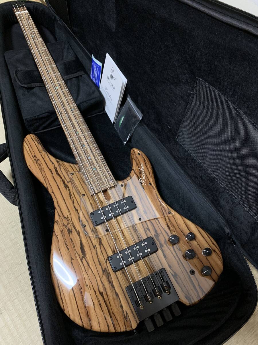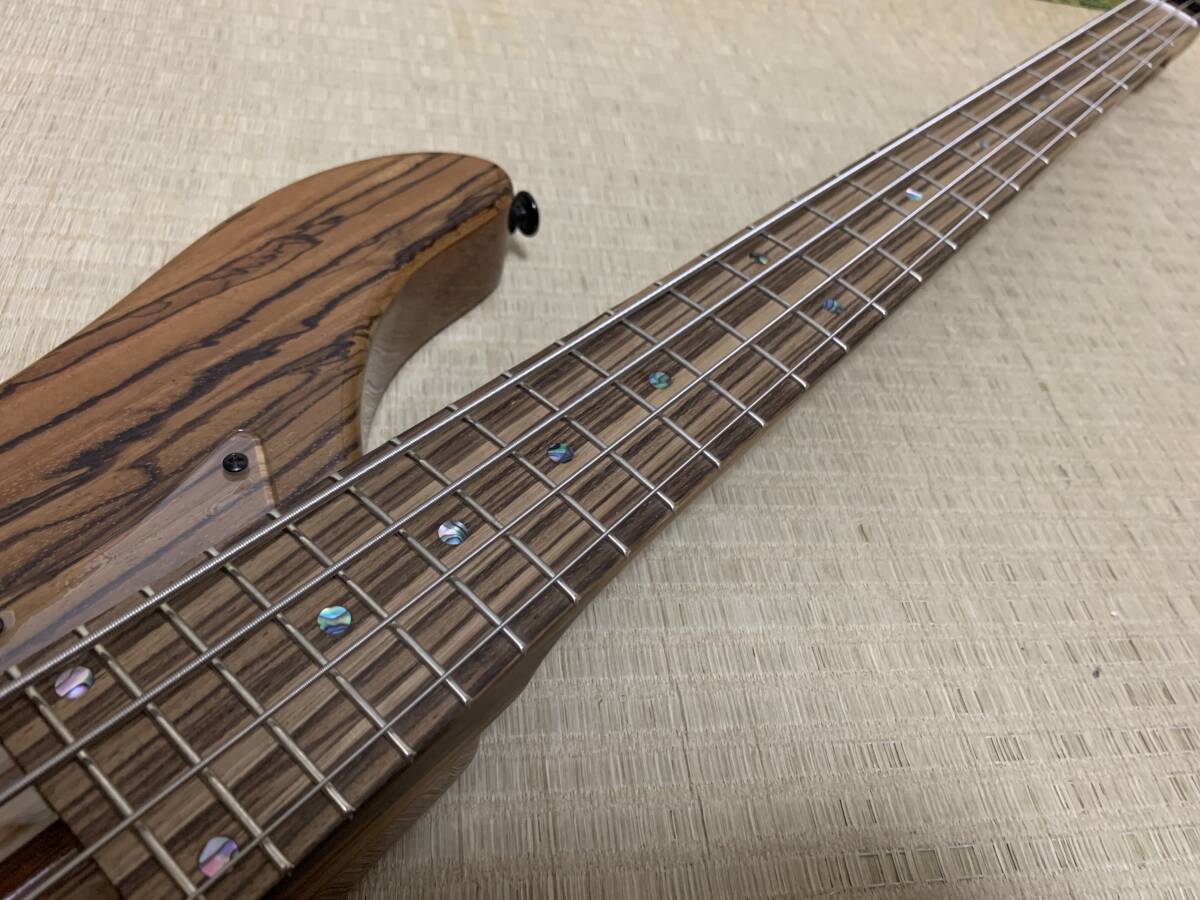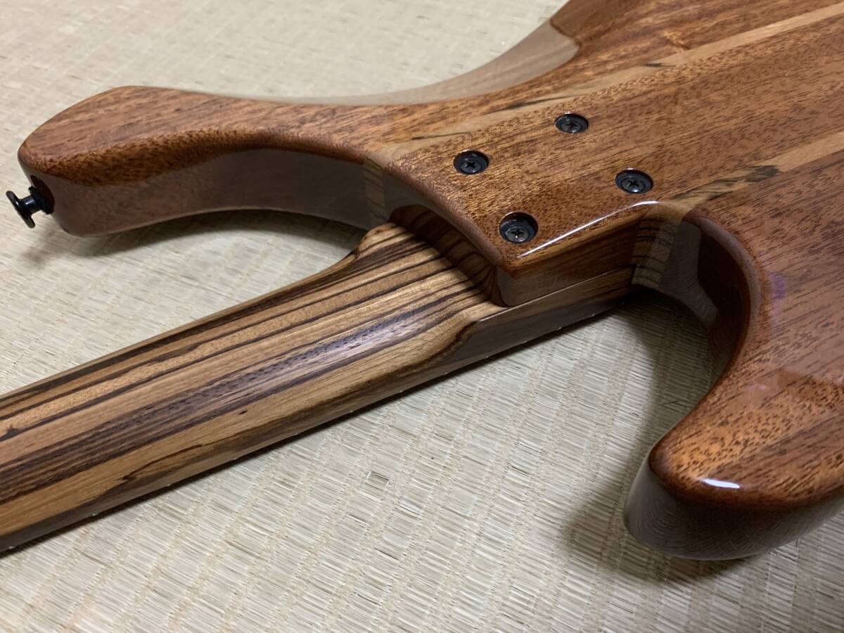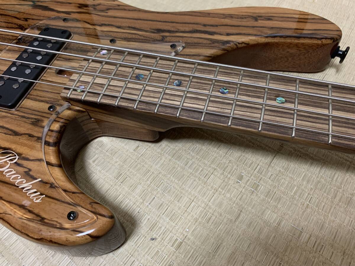 Bacchusのベストセラーエレキベース「WOODLINE 417」を基準に、Hipshot Headless Bass System Bを搭載したヘッドレスベースを製作しました。新たに描き起こしたボディアウトラインは、レギュラーモデルBacchus WOODLINEが持つディンキーシェイプ、シャープなボディエッジの印象を残しながら、ヘッドレスモデル特有の違和感を最小限に抑えるボディサイズ、ボディバランスを実現。24Fまでスムーズに演奏できる深いカッタウェイも自慢です。ヘッドレスベースの新たな指針となるポテンシャルを秘めた、高い完成度の意欲作がついに完成!!およそ自然のものとは思えない縞模様が特徴のゼブラウッド。シマウマのような美しい縦縞がある事からゼブラウッドの名がつきました。アフリカ原産のマメ科広葉樹であり、材は硬質でメリハリのあるサウンドが期待できます。