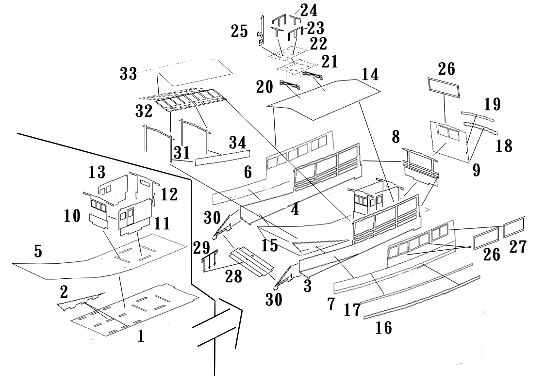 1/150の渡船(二階堂型)のレーザー切り抜き済みペーパーキットです。