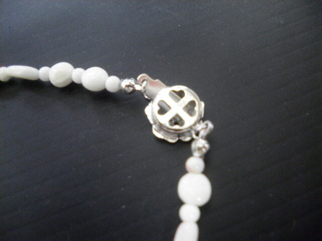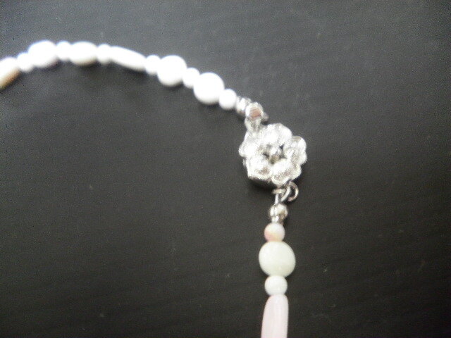 【SALEセール】☆処分品/未使用品☆下げ札なしです!!(モニター環境により色が写真と少し異なる場合があります) ☆サイズ 長さ 約 45cm 全長※留め具含む 幅 約 ネック玉0、5cm トップ飾り 横 約 0、6cm 縦 約2、0cm※参考程度に(測る場所により多少の誤差が生じます)☆素材 さくら貝 ☆留め具 SILVER (刻印)☆保証書、ケース等の付属品はありません ☆宝石の里 甲府の職人さんが一点一点心をこめて仕上げた希少品です。百貨店等の展示処分品や倉庫に眠っていた商品に付き割引価格でご案内いたします ☆処分品のため 素材の性質上、天然石なので色味の違いや傷、欠け、内包物によるくすみ、糸の劣化等がございますのでご了承下さい。 ご理解の上、入札をお願い致します。 |