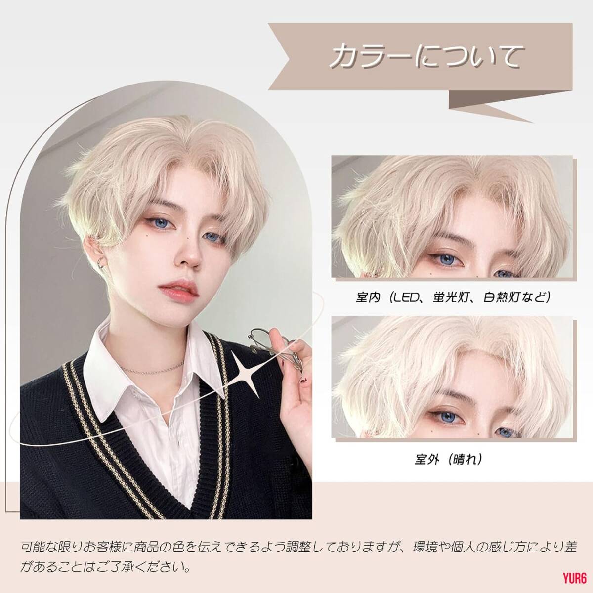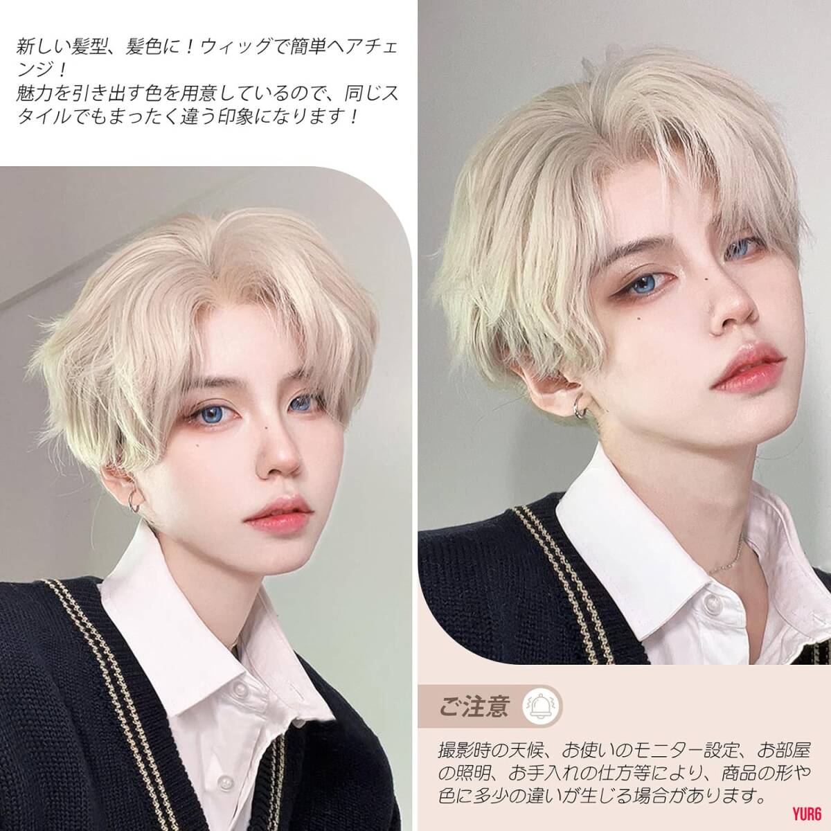 ライトゴールド メンズ ウィッグ フルウィッグ かつら 耐熱ファイバー レイヤーの入った ナチュラル 通気性 快適 普段使い イベント 学生