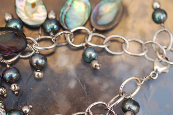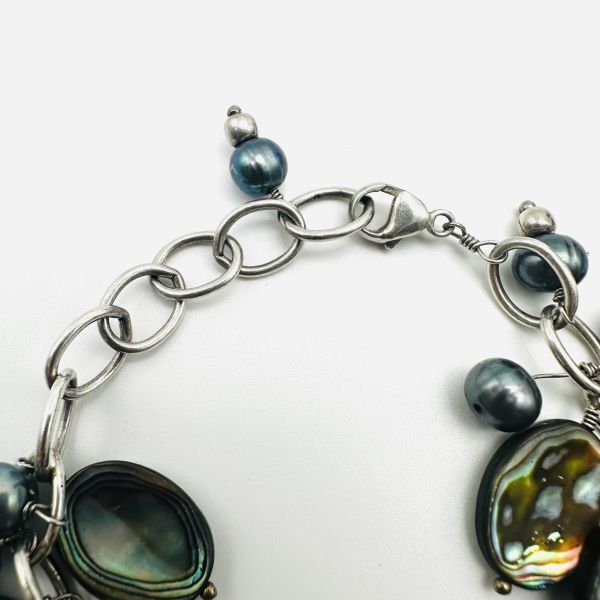 年代 :1970s 辺り サイズ :全長 23cm / シェル 2cm x1.5cm / パール 直径1cm 素材 :STERLINGSILVER(銀925)/ アバロン (貝) / パール (黒真珠) 刻印 :925 重さ :約52g アメリカで買い付けたビンテージ、ブレスレットになります。 腕周りのサイズ調整は可能で17cm~22cm辺りになります。 メキシコ製だと聞いておりますが細かい詳細は不明になります。 多少の使用感や黒ずみはありますが破損は無く良い状態です。 全ての商品は古い物のため細かいキズや使用感はありますので ビンテージ品として理解頂ける方のみ入札下さい。 他にも世界のアンティーク雑貨等、多数出品しておりますので宜しければ マイオークションからご覧ください ↓↓↓ ![]() サイズは出来る限り正確に測っておりますが、多少の誤差はご了承ください。 写真をしっかりとご確認の上、入札して下さい。 (神経質な方はご遠慮下さい) 質問などありましたらお気軽に問い合わせ下さい。 尚、細かい写真など詳細をご希望の方は拡大写真を送りますので、質問欄にご希望の旨とメールアドレスをお載せ下さい。 (ご質問内容は公開される事はございません。ご安心下さい) | |||