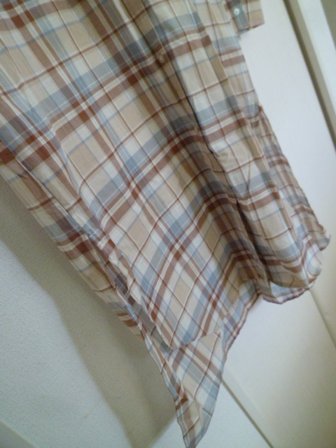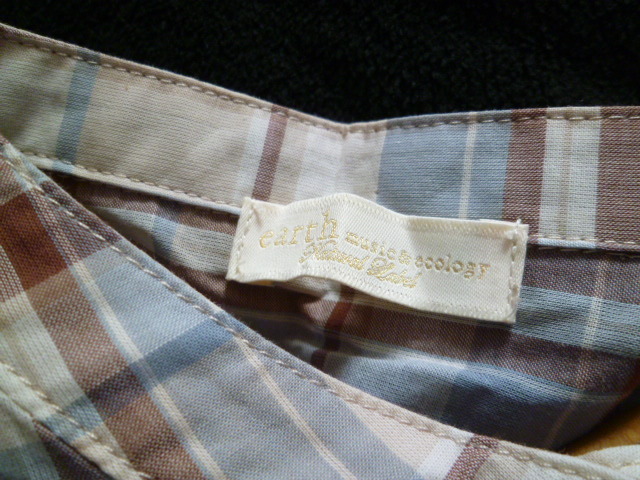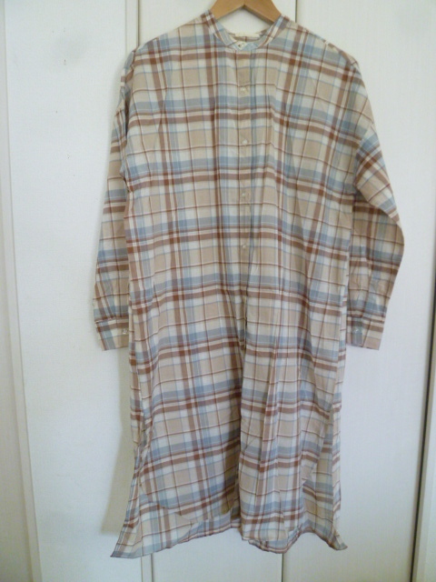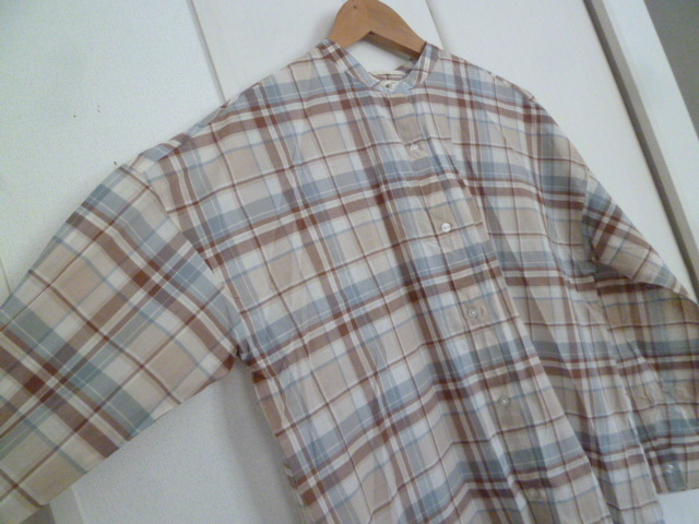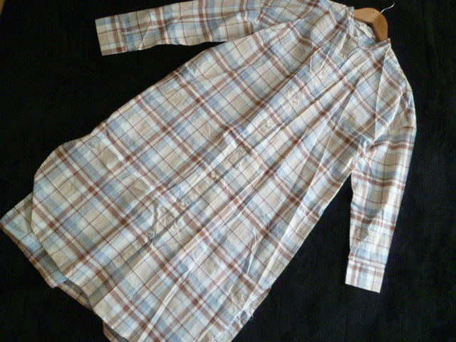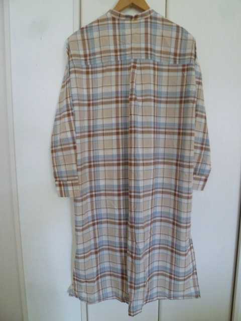 earth music&ecology/アースミュージック&エコロジー◇くすみカラーチェック柄ノーカラーシャツワンピースF/長袖ロング◇A77op
