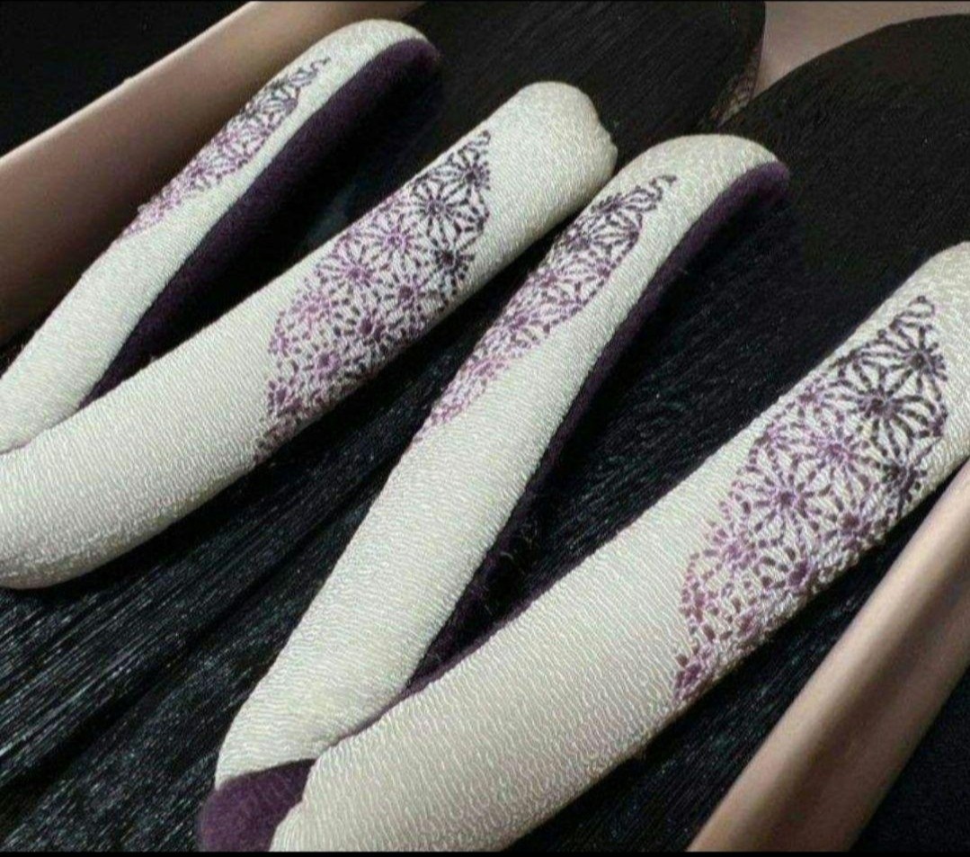 鼻緒部分に丁寧に麻雪花が刺繍されています。