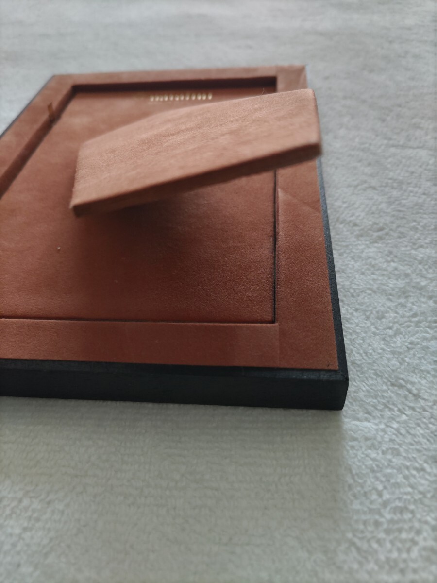 裏は高級感のあるベルベット張りで、金色のブランドロゴが記されております。