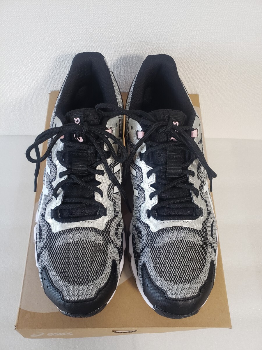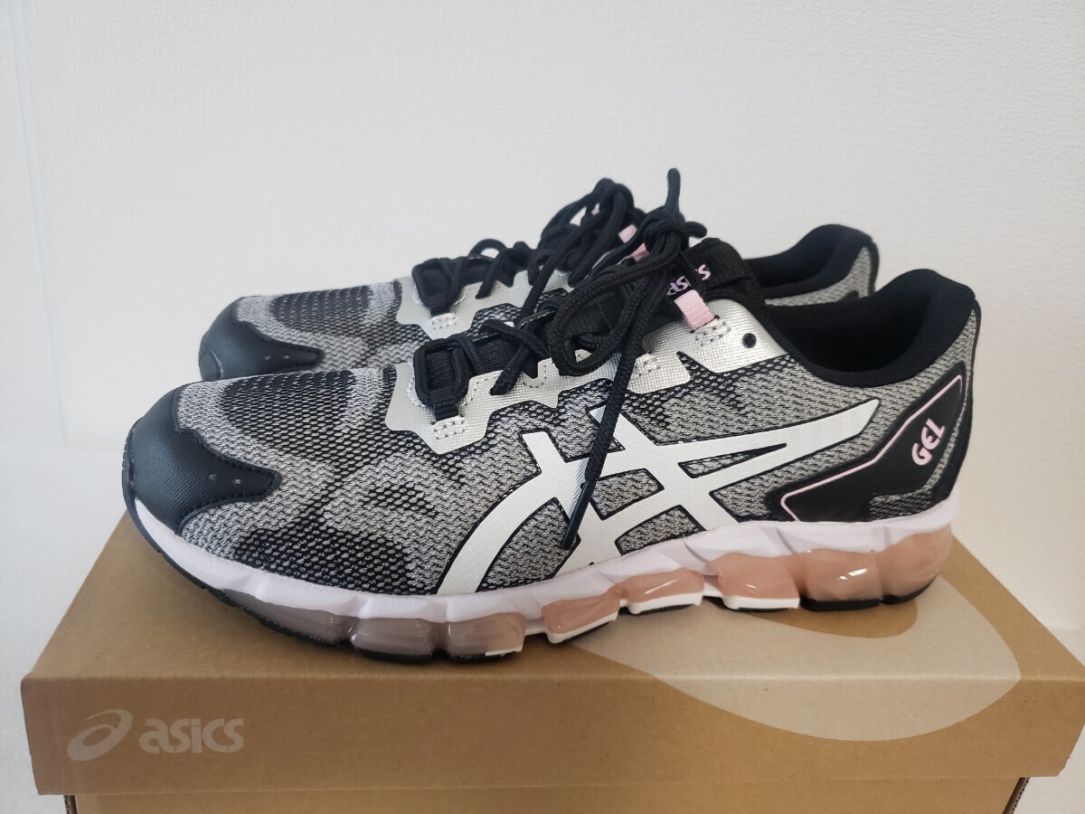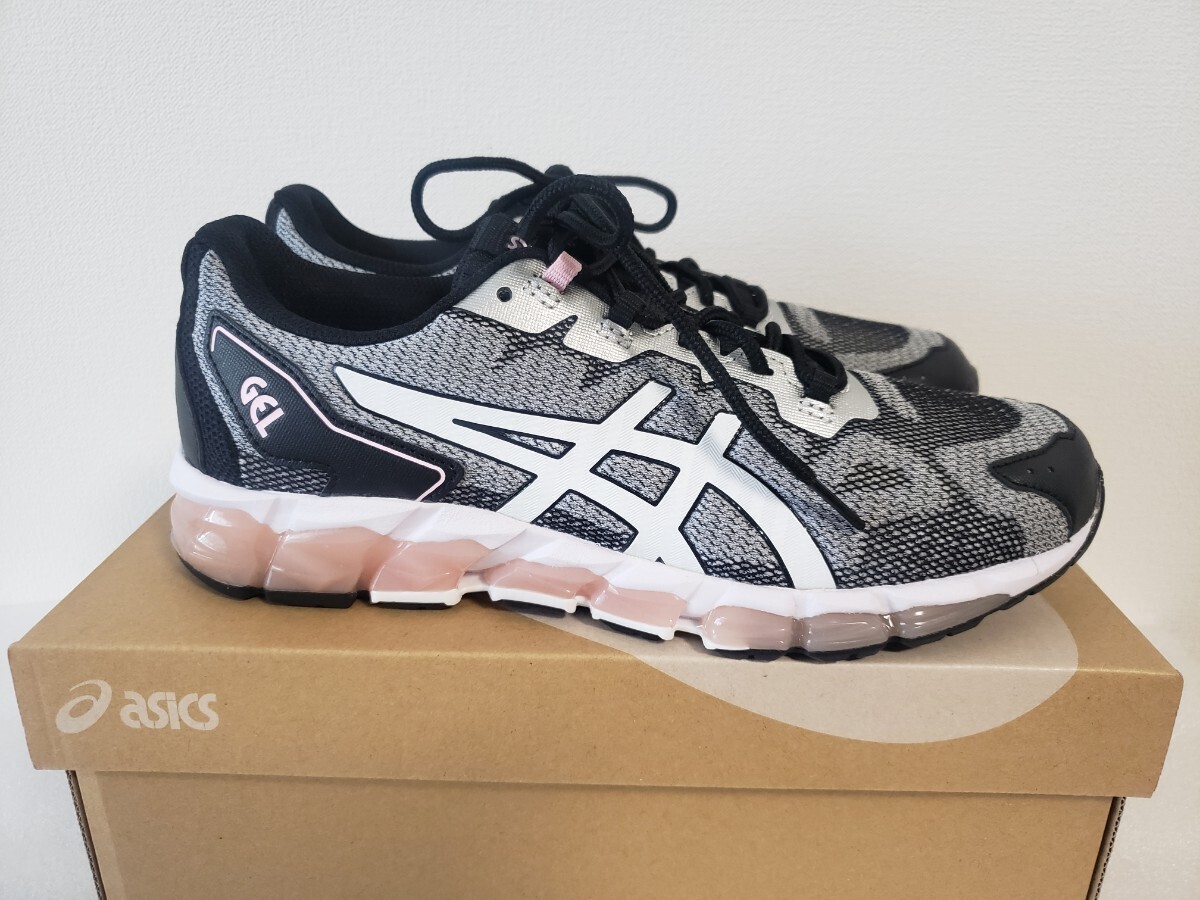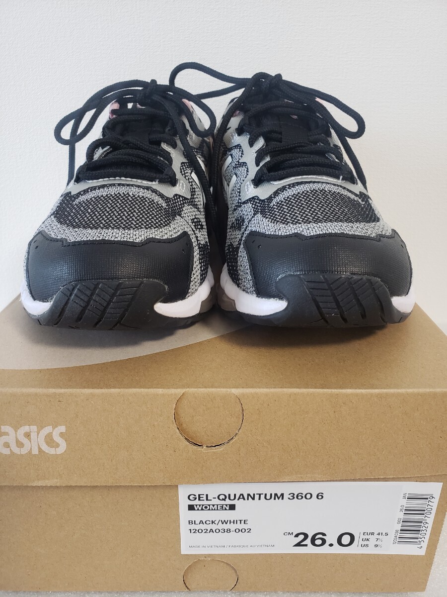アシックスのGEL-QUANTUM360 6、ブラックとグレーにピンクのゲルが可愛らしいスニーカー(カラー表記black/white)、レディース26.0cmです。