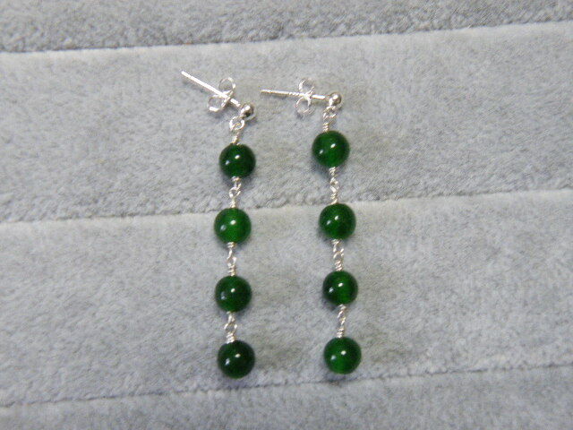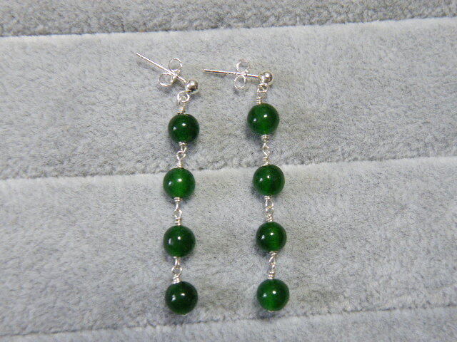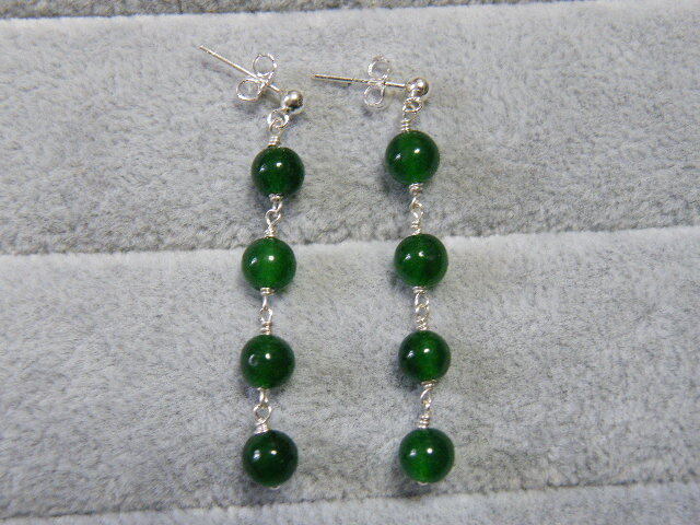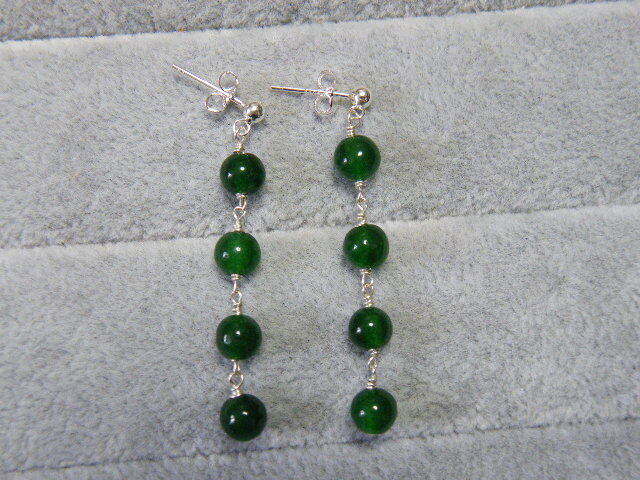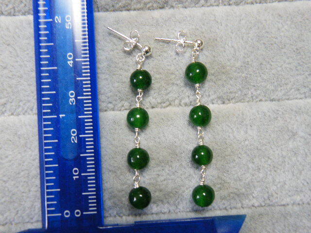 R00066.翡翠 ヒスイ風 グリーンカラーストン シルバー925 ハンドメイド ロングピアス