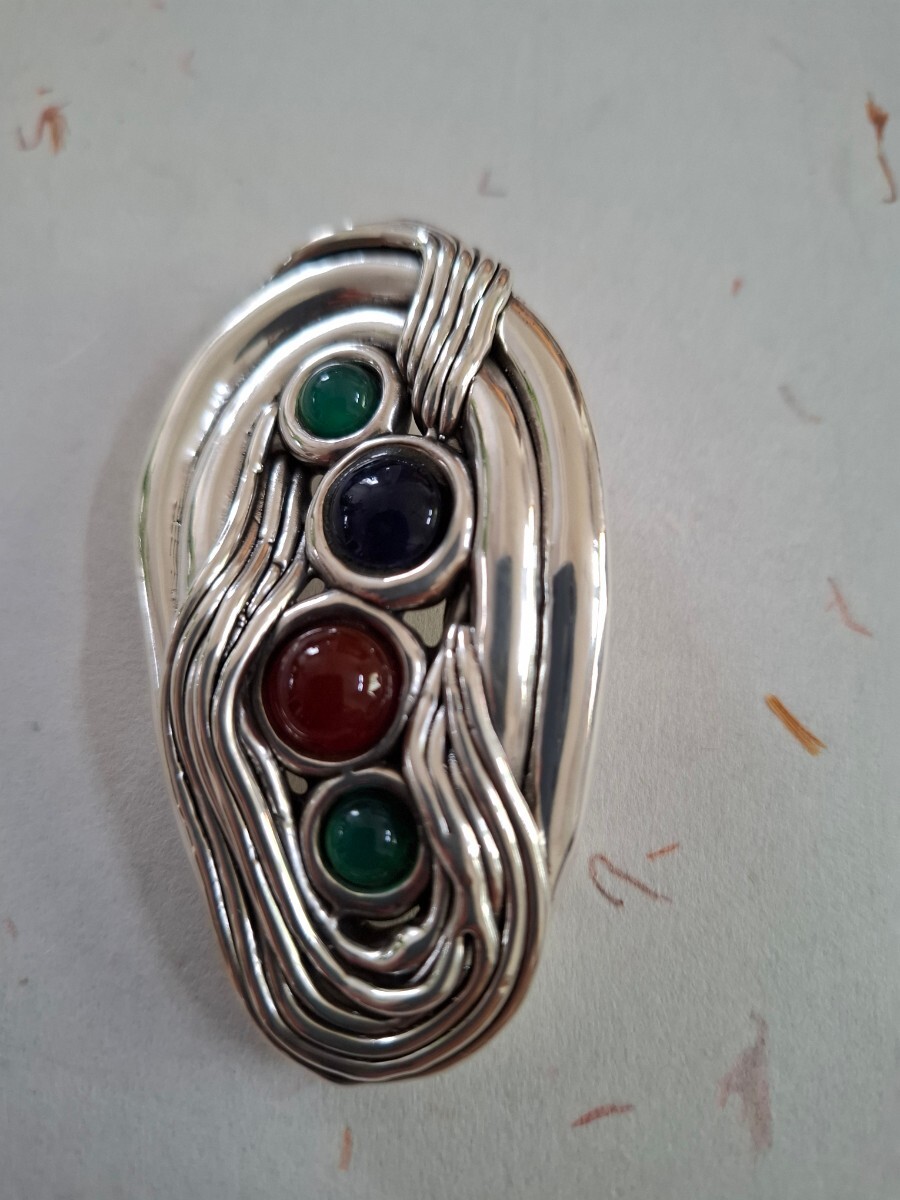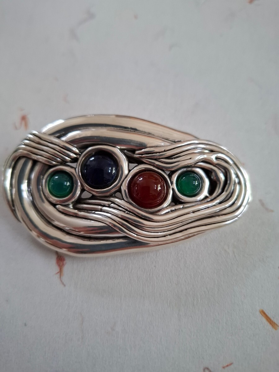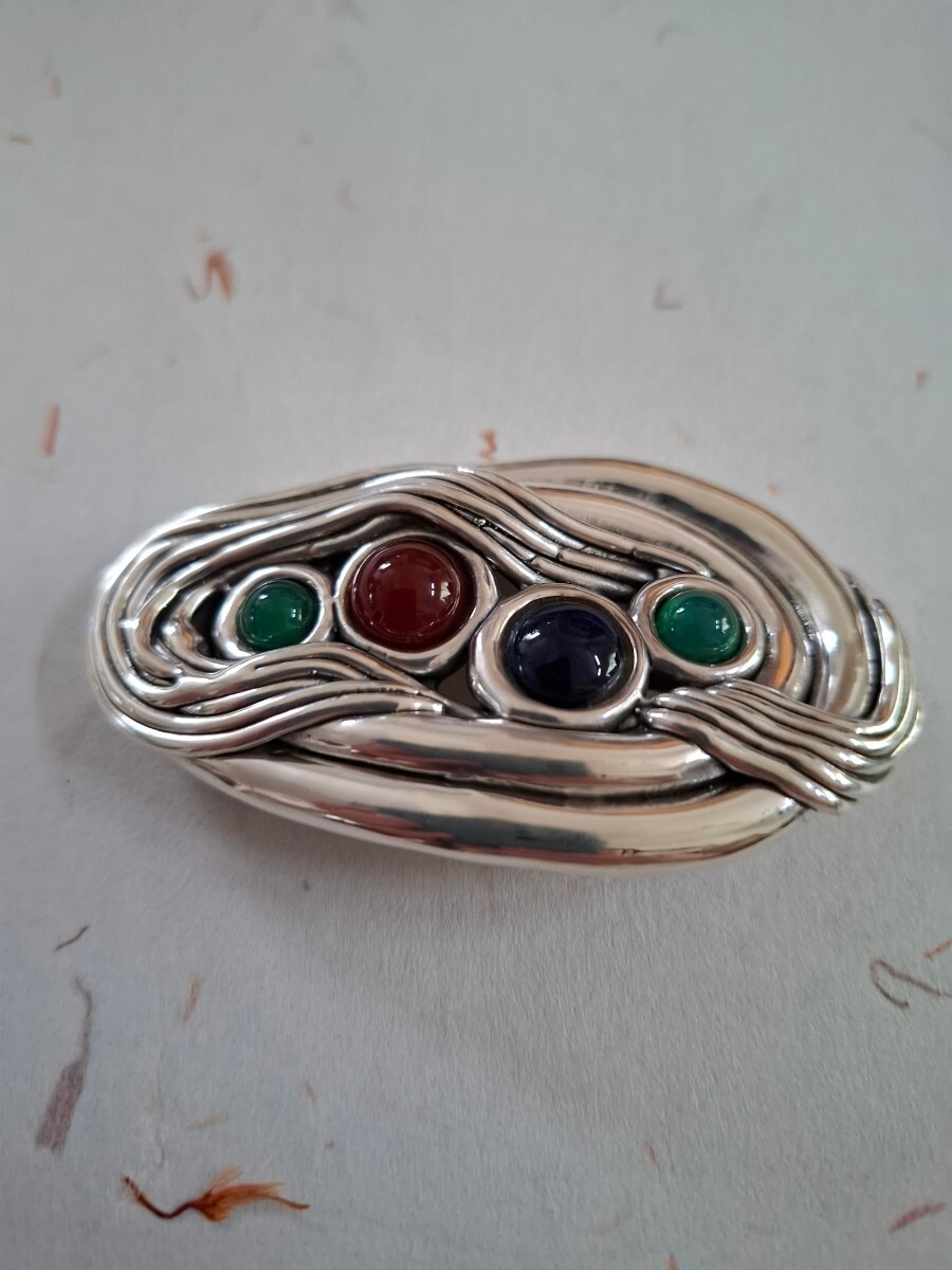 ラピスラズリ 瑪瑙 ブローチ SILVER 925 イスラエル製 Bat Ami 約25.62g
