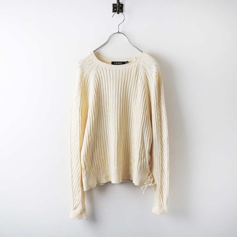 ローレンラルフローレン LAUREN RALPH LAUREN コットンリネン サイドレースアップ ニット SP/アイボリー【2400013935081】