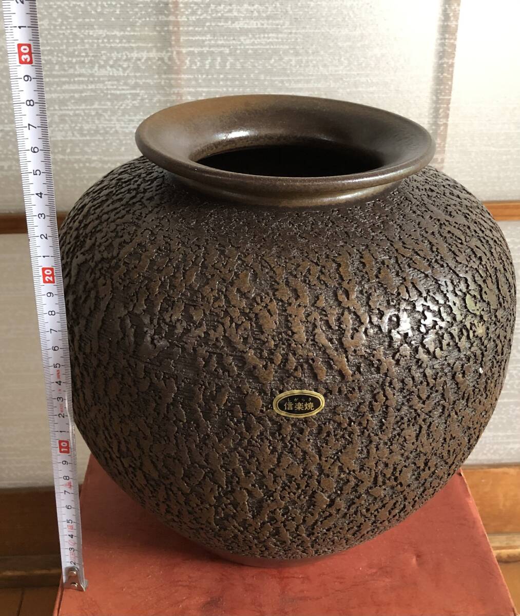 長らく自宅にありましたが今後も使用予定がありませんので出品致しました。信楽焼きの花生です。画像にてご確認ください。発送はゆうパック静岡発にてお送り致します。是非ご検討下さいませ。